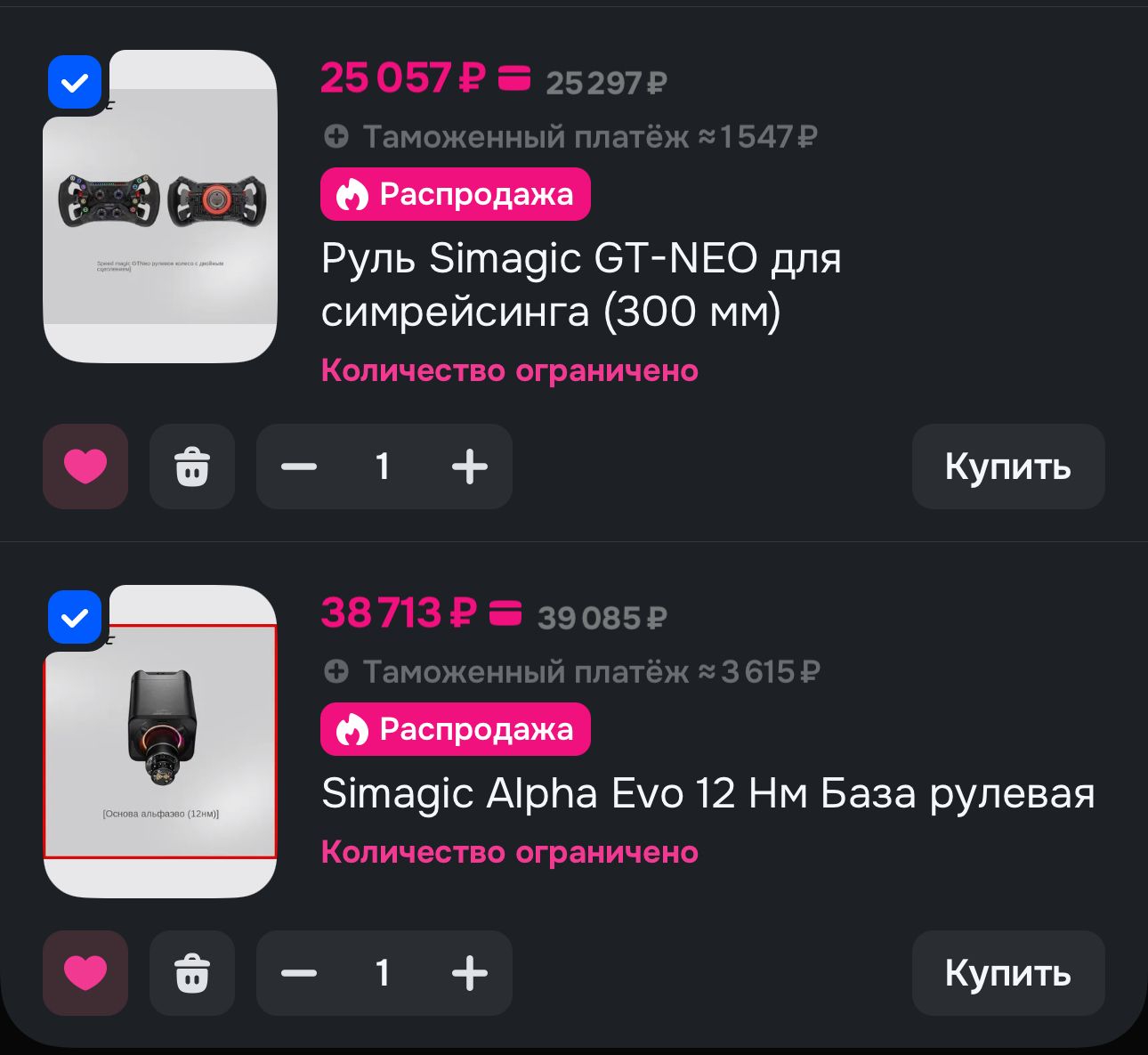 >>50131898 Очевидный PXN V10 Pro с китайского озона за 15-18к. Еще можно посмотреть cammus c5, pxn v12 lite. Еще как вариант поискать бандл мозы 5 на лохито, косарей за 30. Вариантов от лохов, которые купили, покатались 2 часа и закинули сруль на балкон - не просто много, а ДоХуЯ. Остальное дороже будет. Ремни/шестерни - забудь нахуй, эта хуета только для музея годится.