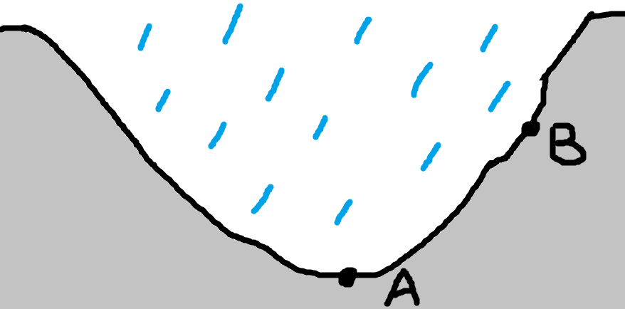 >>50247824 Какой нахуй глубины углубления должны быть, чтобы удерживать воду на спуске? Если у тебя по какой-то причине вода будет оставаться в точке В, когда остальная часть дороги уже высохла, то ты долбоеб.