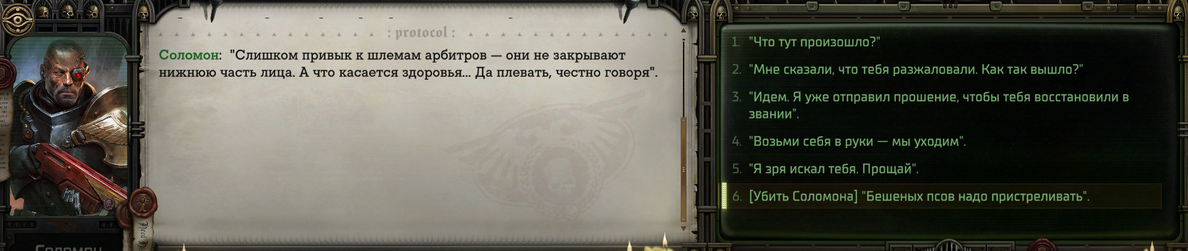 Тю бля, в угнанном отписался. Так вот: только начал проходить Rogue Trader. Мне кажется, или игра даёт маловато разнообразных реплик для отыгрыша персонажа? Да и стилистически нейтральные реплики не всегда доступны.