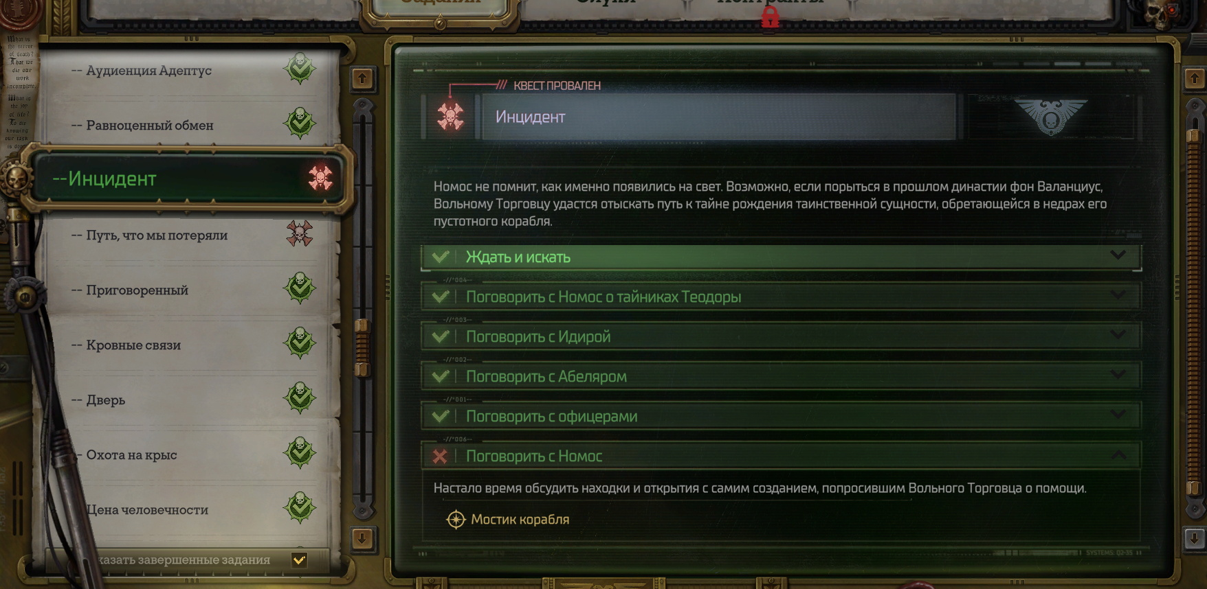 >>50233645 Ебал я в рот перепроходить. Квесты номоса, как я выше писал, у меня видимо забаговались. А про голос все время писали что это точно не хаос, и ваще не из варпа.