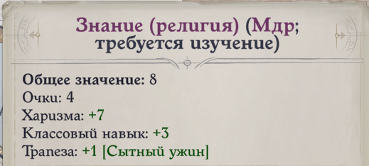 >>50233620 А, лол, если в тойбоксе прибавить и отнять единичку в знании религии, то все работает и модификатор харизмы добавляется. Это, если что, подкласс обманщика магии живое божество.