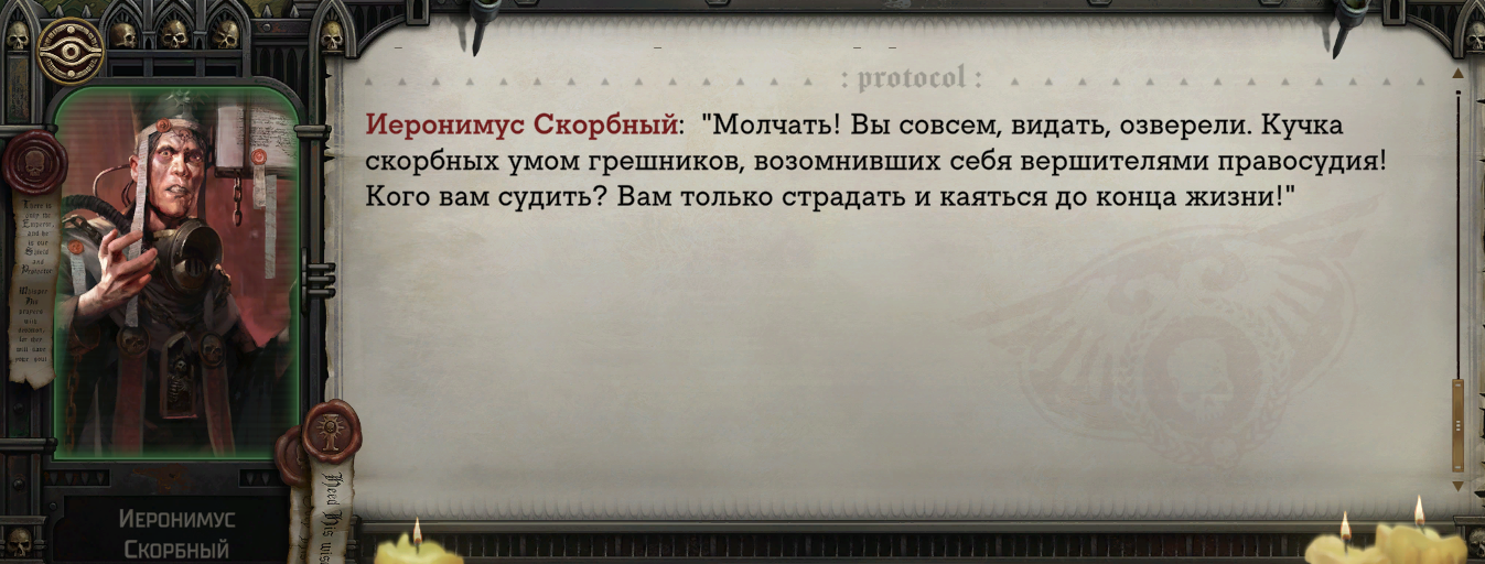 Как же кринжово расходится игромех с повествованием. Мы типа геройски сплотили всех на футфоле дать великий бой инцелии, начинается собсно бой: враги стоят в куче, гг-псайкер-стратег первым ходом 3мя пси-нахрюками их всех убивает, дальше скриптом ход переходит к инцелии, которая делает 10 выстрелов подряд и дохнет. После этого с посланных на суицид "самых бесполезных" штурмов губера лутается бронь, которая лучше чем у инцелии и всех боссов за всю игру до нее.