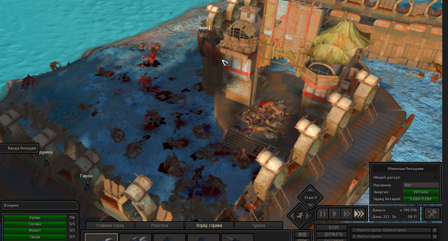 Побродил по Дальним Землям и Берегу Грозового Ущелья. Хотел дойти до Запретного Острова, но чота как-то там куча разных бандитских фракций. И Разбойники, и Луговые собачкипираты, Чёрный пёс, какие-то сраные культисты. Вот вроде все слабенькие (относительно моего отряда), но их много, и они так и норовят покоцать не людишек, а скотину. Быки и собаки без брони, и в них с пары ударов лапы в минус, соответственно скорость всего отряда падает; а без быков я в такую даль не попрусь, обратно ж надо будет лут тащить.