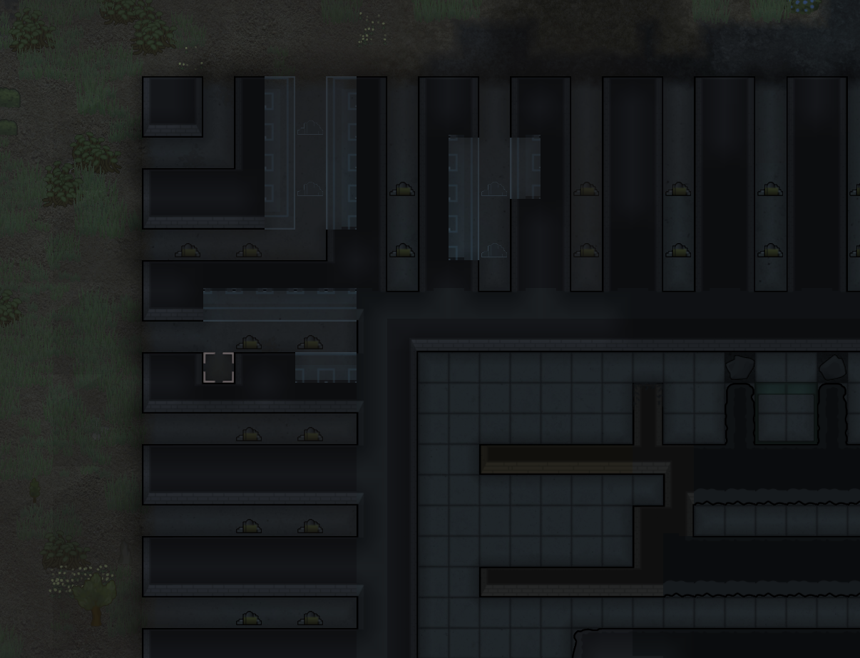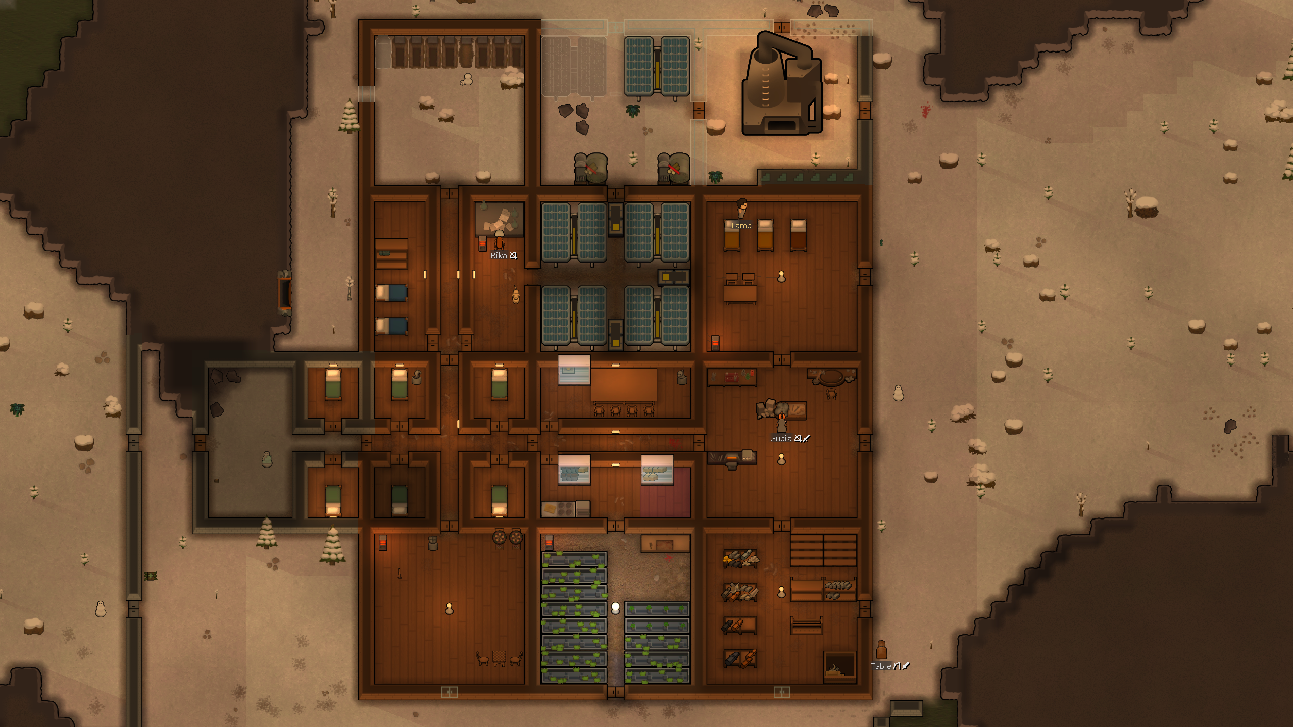 >>50243157 Плантации пиздос. Никакой меты. Батареи любят делать бзз, так что если играешь с батареями(не обязательно), лучше бы их разнести стенками, чтобы не сгорели. Минометная батарея - мое почтение. Солярки где-то в ебенях. Прямо ждут, чтобы туда кластер приземлился и вынес тебе энергетику. Комнаты оче плохие. Мало дверей, узкие коридоры(коридоры лучше вообще не делать) Всякие хуйни по центу, чтобы пешка лишние зигзази выписывала. Холодильник на другом конце карты от полей. Диспенсер не соединен с тюрячкой. Нету освещения на складах и в жилом отсеке. А это скорость перемещения. Спальные комнаты вообще пиздец во всех смыслах. Склады зачем-то разнесены, но хоть не в ебенях от мастерской и то хорошо. Очень плохая база короче. Тройка с минусом максимум.