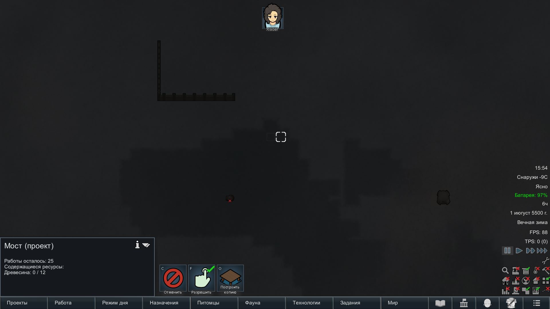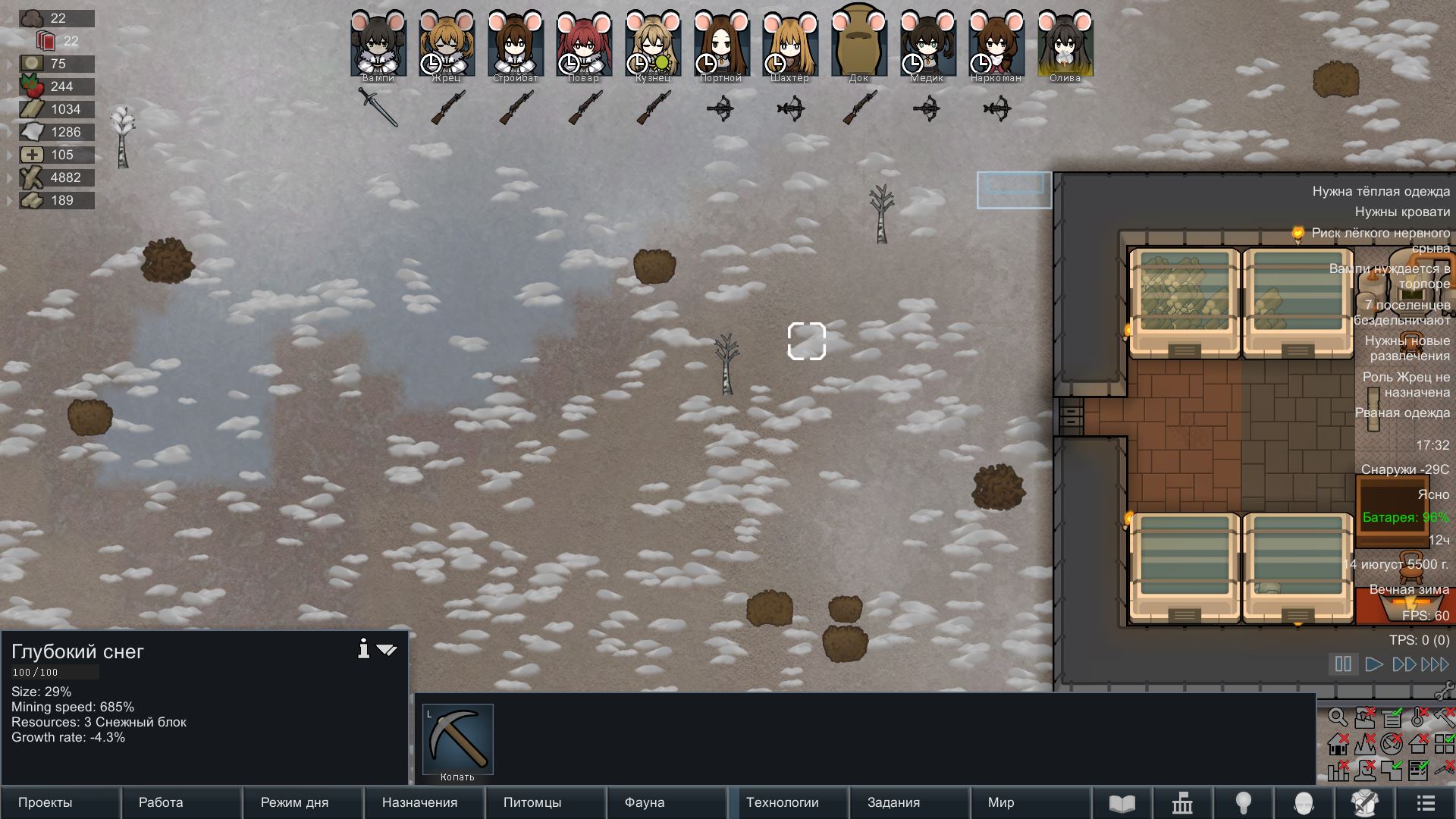 Задолбался с этими поездами. Сначала долго не мог допетрить, как построить рельсы на леднике в горах. Колонисты что-то строили-строили 2 дня, а потом ничего не появлялось. Поставил мод Rails and Roads of the Rim - он не дает строить туннели на айс щите. Кайф. Поменял в конфиге холодных биомов allowRoads на true у айс щита и ура, рельсы появились. Наконец-то дали собрать караван с поездом, но при отправлении писало что-то вроде Exit area is blocked (SE) (S) (N) ... (your mom) куда бы ни ставил Обидно, потому что "область выхода" на 1 пикче прямо перед носом. Идеальное место для станции, защищенное горой. Я уже и место раскопал. Ну ладно, перенес поезд на открытое пространство. Все равно не едет, сучара. Пришлось раскочегаривать дев мод, пробовать разные варианты. Допетрил, что ему надо нарисовать дорогу через мод Vehicles, тогда он более-менее раскукоживается. Но с дверьми подружить не получилось. Поставил это чудо в ангарчик без крыши возле базы, для поездки надо разобрать 3 клетки стены, чтобы оно могло протиснуться. Рельсы на локальной карте ему не нужны, только для красоты. Проложу потом, когда допетрю как спрятать поезд под землю и чтобы оно еще путь находило. В итоге смог сделать тестовый заезд в соседний тайл, но и там оказался нюансик: почему-то оно крашится при попытке сделать Camp, не выходя из поезда. Благо его можно бросить на карте и зайти просто колонистами - тогда норм.