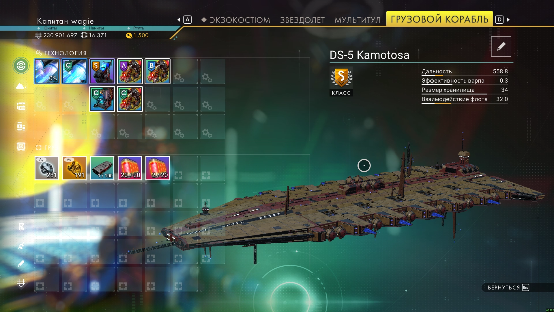 Тем паче что игра мне подкинула контракт на покупку (как обычно - за копейки) Зеленограда первой модели - экспортный устаревший вариант ДМЕ флагмана. Но даже так он не сильно уступает новому, а кое в чём - в скорости и разнообразии вооружений, превосходит. Ибо на нём можно комбинировать все типы вооружения. И по прямой этот красавец обгоняет почти все крейсера и немалую часть эсминцев. Так ещё и встроенные сенсоры, утилизационный кран и экранирование трюма, экономен в плане содержания и имеет вместительные трюмы и баки. Правда вооружение до полноценного линкора не дотягивает и в целом нужно следить, чтобы на своих скоростях не влетел куда не нужно.