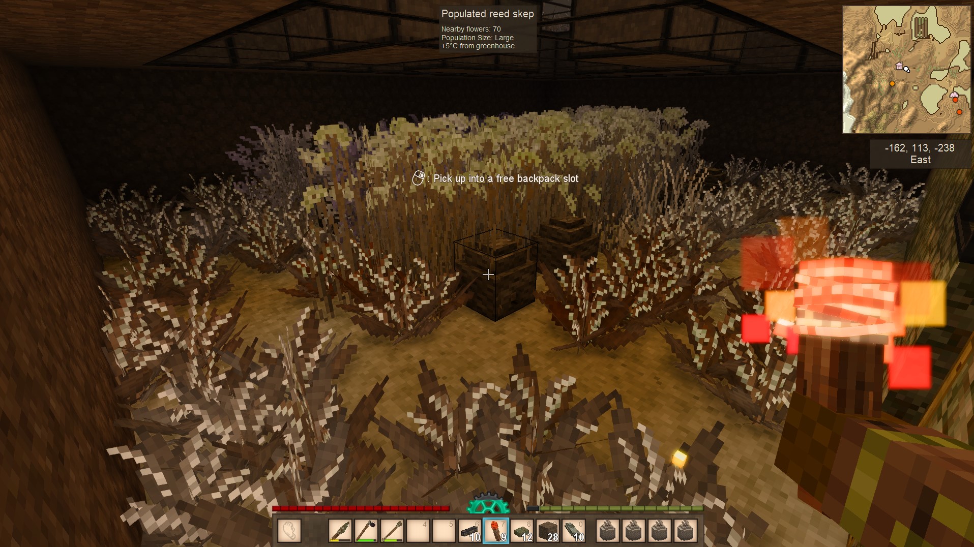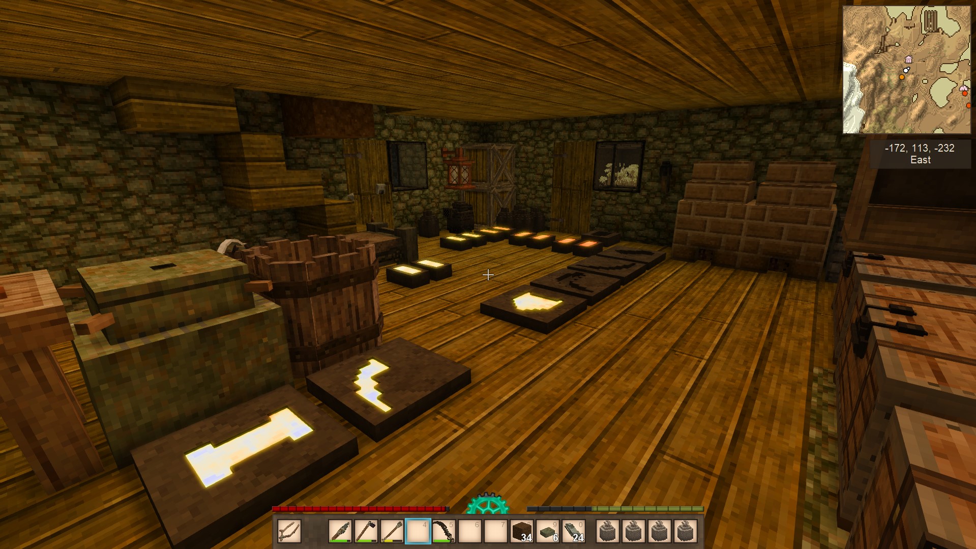 От винтажки прям кайфую всю неделю. Середина ноября, уже выпал снег, кладовая не битком, но норм, с голода не помру. Есть всё, кроме молочки, животными пока не занимался, слишком много всего делать приходится одному. Зато пасеку в теплице сделал. Потом расширю и посажу туда морковку с репой, благо стекла хватает. Пока делаем медные слитки и инструменты впрок.