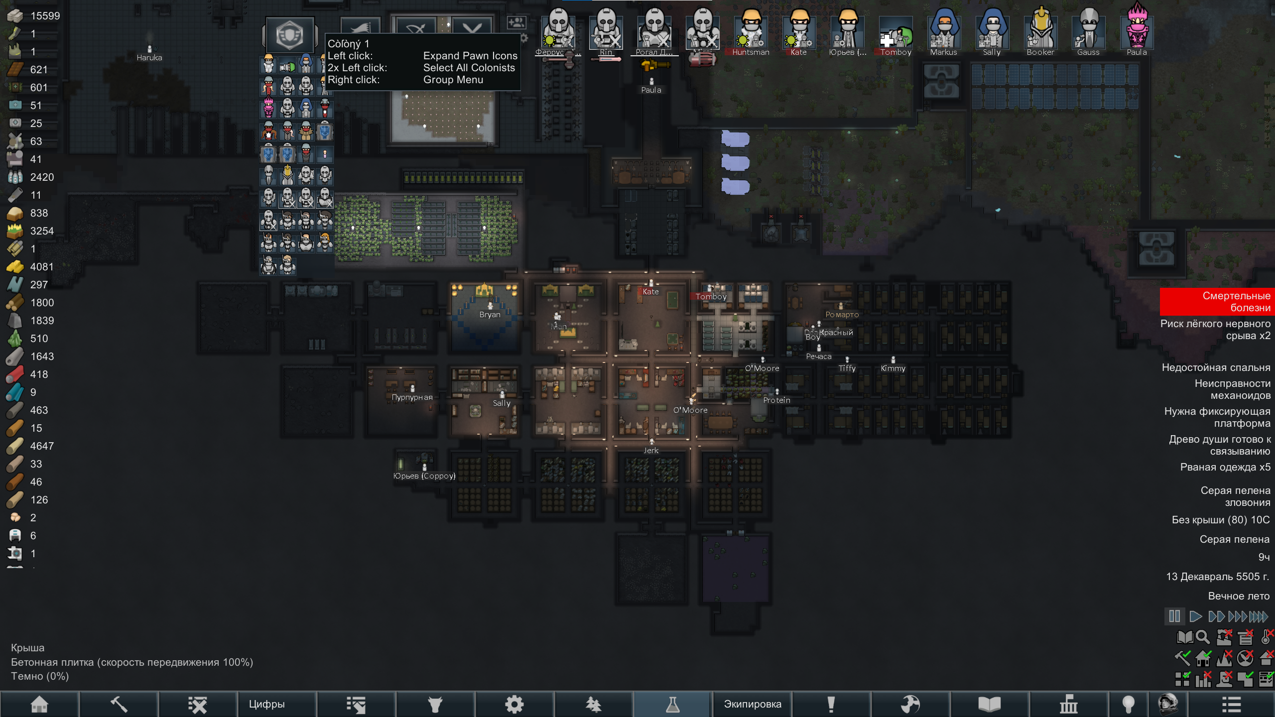 >>50243223 тут всего один мод на интерфейс, аналогов которому нет, для управления калонией на 40 человек. На дизайн для нетакусек я ложил кста. Цель - послать нахуй механику богатсва и за манчкинить калонию без геймплейных модов, для дальнейшего противостояния усложняющим модам по типу войдов. >>50243247 Логистика пизда, но я пока так далеко не заходил даже. Батареи кстати не коротят у меня. По поводу соляков я хз высаживаются ли туда если клетка занята батареей, пустое пространство я естественно крышей буду крыть.