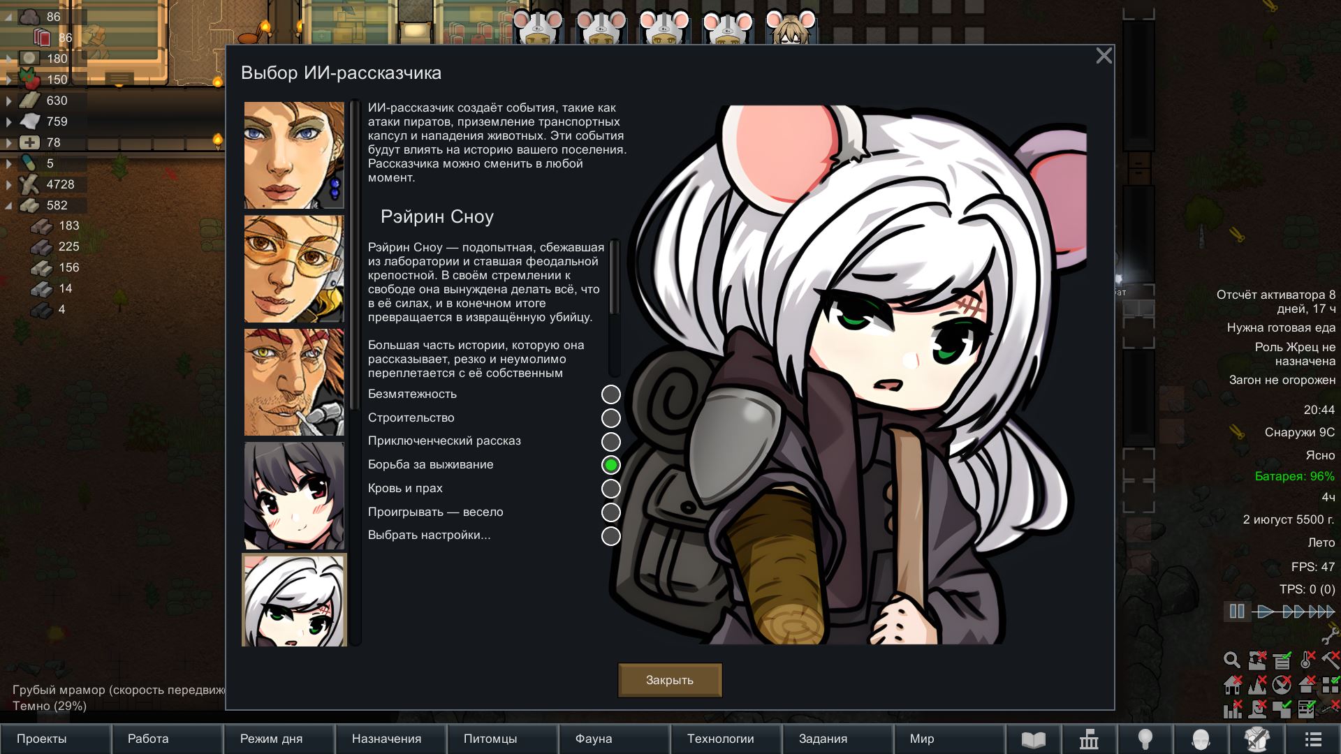 >>50239942 > Зачем же с дефолтным кошмаром играть, если ты дней сто уже прожил, судя по стамине. почти в два раза больше, но лень заморачиваться - так, настроил приоритет лута по коробкам и чуть инвентарь кастомизировал
