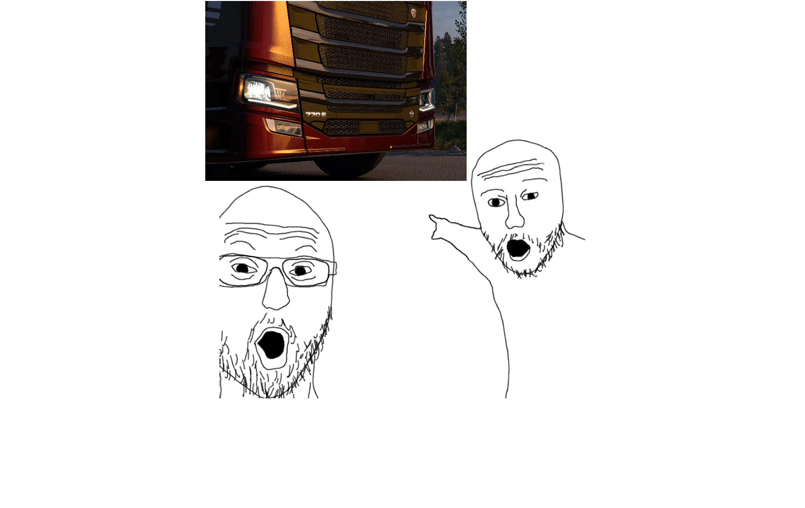>>50375324 >Скания красивый Это да, я хоть на америкосах в обеих играх, но Скании, Дафы и Маны уважаю. Для меня чисто визуально они смотрятся лучше Вольво/Мерсов или Реношек. Интересный парадокс наблюдаю с момента вката в тракосимы: С самого детства дальнобои ассоциировались с европейскими бескапотниками. После того как вкатился в ATS(чуть позже ETS) - распробовал капотники всех типов(классические крокодилы или модерновые под классику, скруглённые (а-ля вторая Каскадия/Кенворд-680, Петербильт-579) или просто модерновые. Сейчас для меня капотники - one love, как говорится. Исключение - европейские капотники. Уроды все до единого. Высеры и жалкие подобия догнать Америку. Ноу вискас.