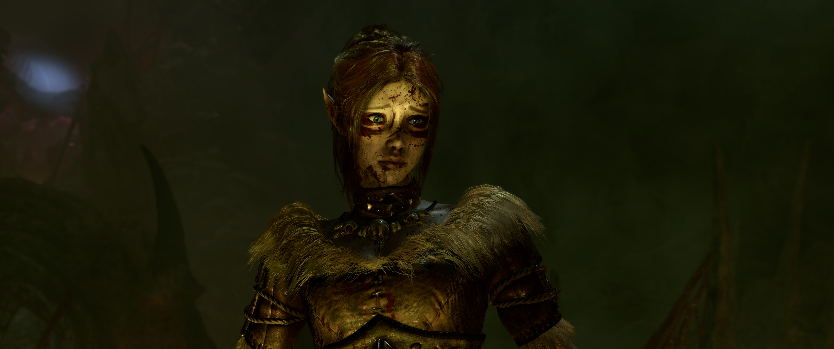 Лизку трансмогом наряжал как мог, чтобы соответствовать. Щас взял Уилла на квест Мизоры. Ебать он гачемученик нахуй - голый торс, портупея, баалистские наплечники, кожаная маска.