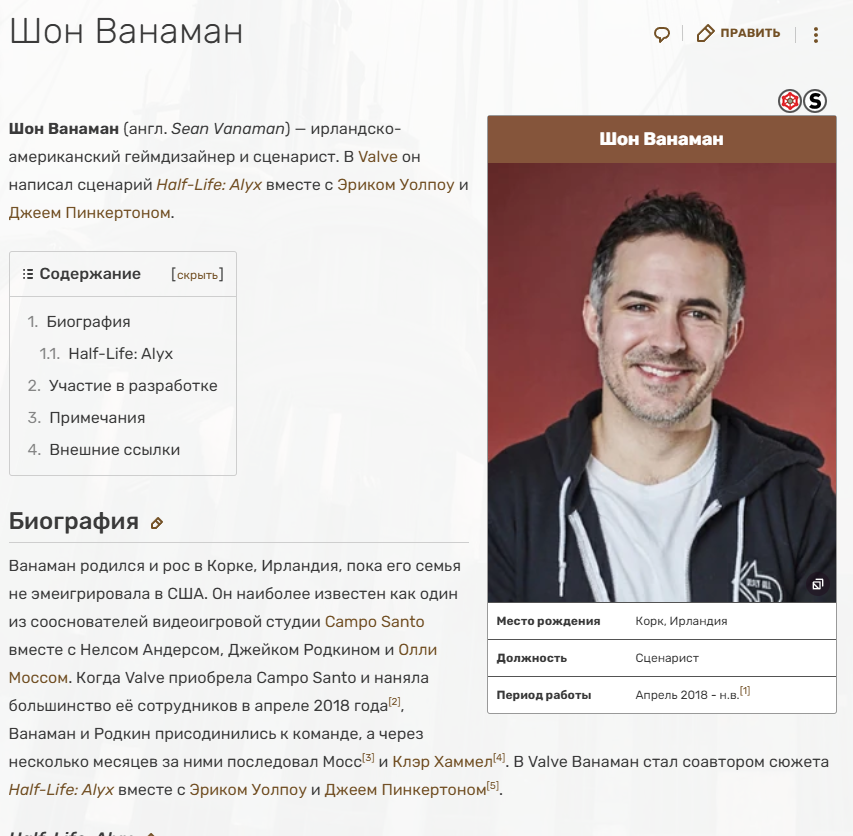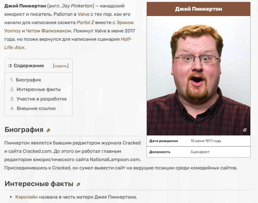 >Эрик Уолпоу — сценарист Valve и бывший веб-мастер Old Man Murray. >Эрик Уолпоу, совместно с Марком Лэйдлоу и Четом Фализжеком, написал сюжет Half-Life 2: Episode One, Half-Life 2: Episode Two и Portal. Там все норм было. >Позже вместе с Фализжеком и Джеем Пинкертоном он написал сюжет Portal 2, а затем сюжет Half-Life: Alyx вместе с Джей Пинкертоном и Шоном Ванаманом. Короче, амбассадор кринжа и смехуечек - Пинкертон, я считаю.