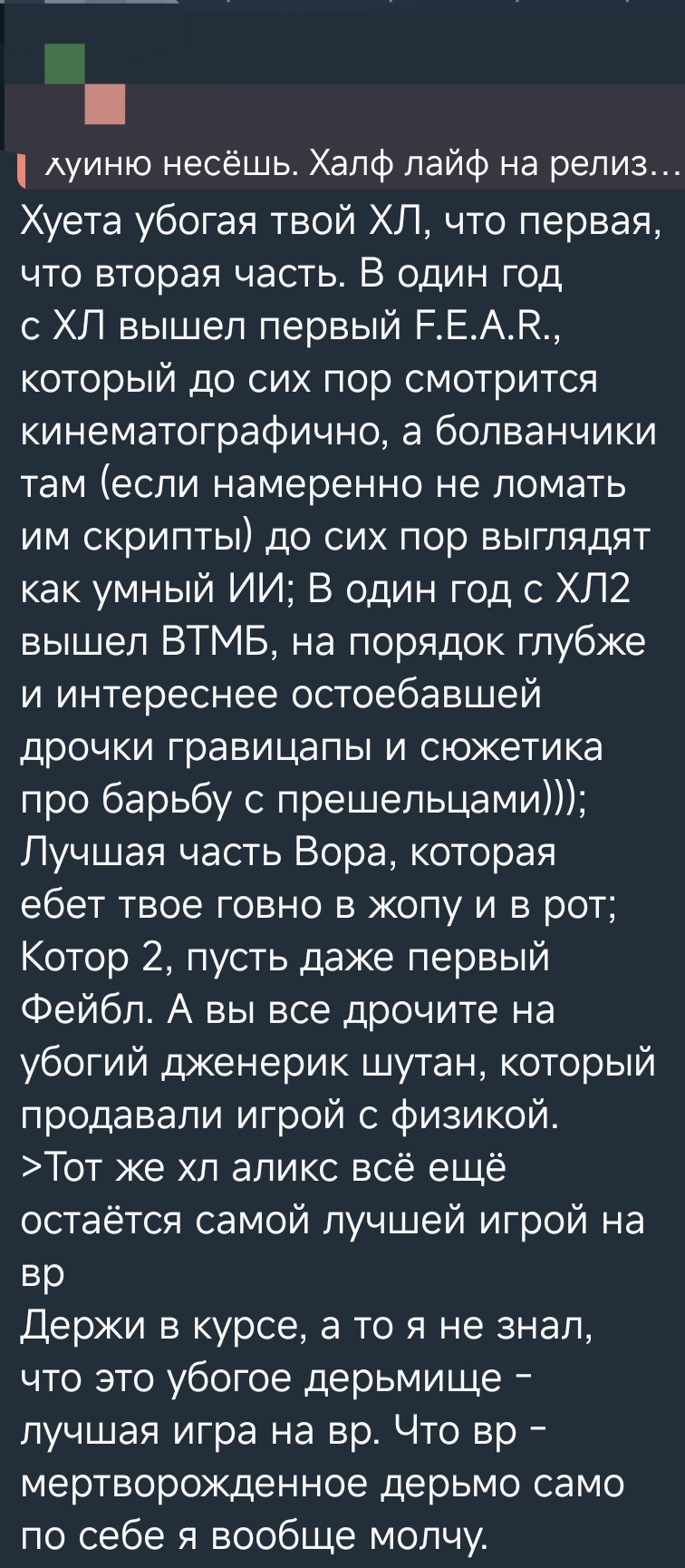 >>47980128 Просто я часто это читаю, когда всплывает тема ХЛ3. Никем такое заявлено не было. При этом после ХЛ2 игры Валв не были шибко революционными. Даже Алух - просто атракцион ВРный, хоть и хороший атракцион. А больше поверю в то, что разработка застопорилась из-за того, что они Эпизод 2 закончили фактической победой сил Альянса, а Алухом очень топорно исправили это говно.