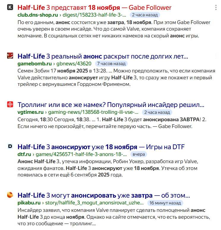 Почему в этот раз люди так разошлись? Слухи о скором выходе хл3 уже больше 10 лет появляются каждый год, пора б уже было привыкнуть, что нихуя не произойдёт.
