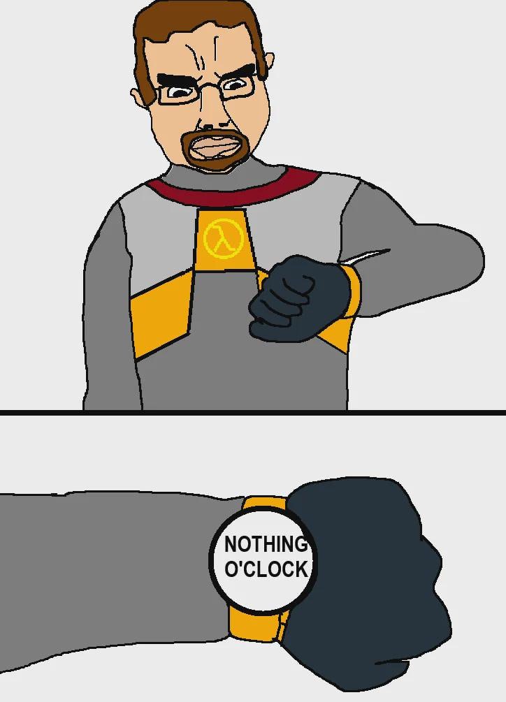 2004 - вышла хл2 2009 - через 5 лет - выкатили ep1, ep2, dods, tf2, portal, l4d1/2 2020 - вышла алух 2025 - через 5 лет - выкатили аж нихуя deadlock Габен там в спячку снова ушёл?