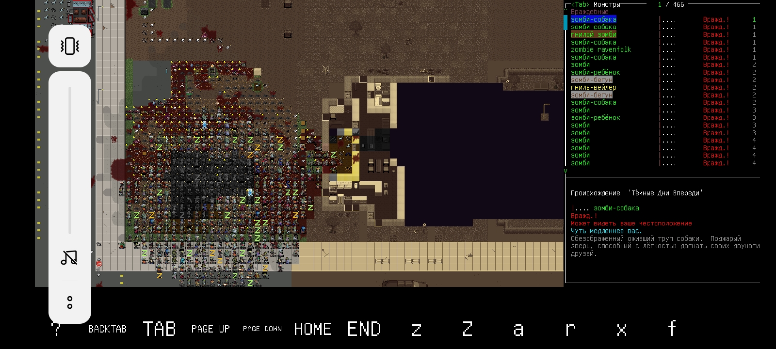 Господа как ныне выживать в cata:dda+мод магиклизма(испытание жертва душа)где инфицирован/с гриппом...Я обычно стартовал в мебельном магазине ,там забегая через двойные двери на склад на стеллажах часто бывают инструменты,да и если не повезло внутри стремянка всегда,выход на крышу...часто рядом здания или вплотную или рядом.Но теперь,после нерфа огня вообще печаль...мало того что набегает более 300 зомбей с округи,так ещё они и не сжигаются массово как раньше.Теперь даже перебраться на соседние здания проблемно т.к часто зомби вокруг барьер в 2,3,4слоя устраивают...сбежать проблемно и врачей-щомбитс таблетосами не полутать П.с сори за зашакаленность картинки