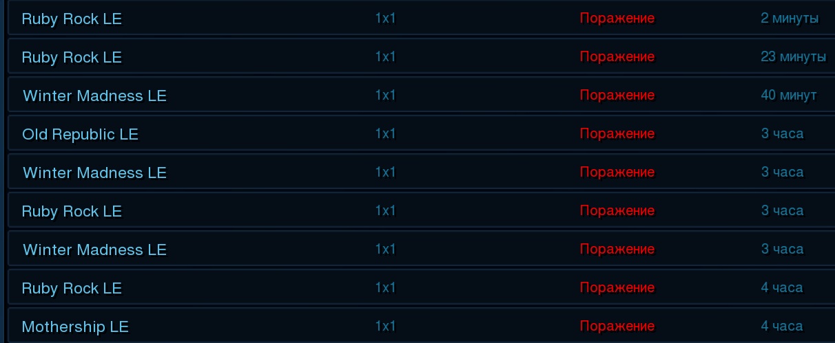 Пиздец какой-то. Катаю 4х4. Последние дня три, вместо примерно равного количества побед и поражений стабильно по 8-9 проигрышей на 1 победу. Реактивно скатился из дна алмаза в верх золота. Да как так-то? Если бы 1х1 играл, то списал бы на какие-то свои проблемы - руки внезапно окривели, мозги тормозят. Но 4х4? От меня зависит буквально 1/8 игры. Тут если бы я просто не прикасался к клавиатуре, процент побед и то выше должен быть.