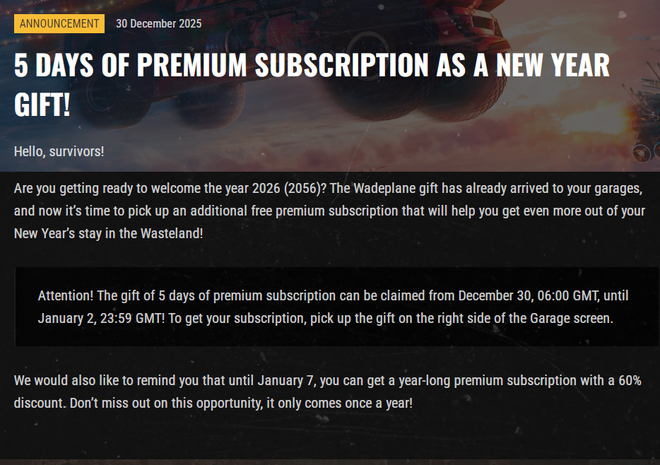 Праздничный чертеж с уникальным декором, а также с особыми баннером и эмблемой для профиля. Плюсом будет небольшой бонус — премиум-подписка; С 5 по 18 июня включительно — ежедневная выдача одного юбилейного сундука в день с ценными наградами. В том числе с новым надувным декором; Новая потасовка в честь юбилея проекта. В цепочке наград за этот режим вы найдёте крутые праздничные новинки; Тот самый «Старый гараж механиков»! Ностальгия; Да — станок. Он также будет активен две недели, а рецепты в нём будут периодически меняться. А также получить «картриджи» за просмотр трансляций по Crossout на платформе Twitch. Среди наград за них будет и кое-что новое. Подробности скоро появятся в новостях.