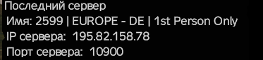 сервер [ 2599 | EUROPE - DE | 1st Person Only ] ( IP 195.82.158.78 )