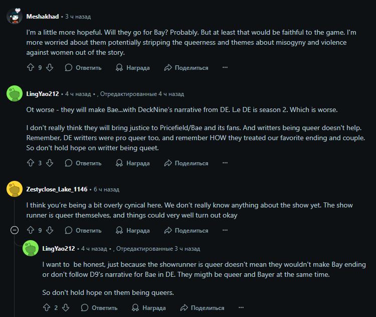 Ну это внатуре типичные реддитовские размышления "бляяя, он такой хуевый белый мужлан вояка, ебет нашу мамку, даебывает нас всю игру, снимает на пленку студентов, давайте его хуесосить" И когда он в конце впрягается за нас, и главный козел оказывается главным хорошим парнем, а главный хороший парень оказывается козлом, девочки с реддита такие "оооо, вон оно как" Ну надо же рефлексировать немножечко уметь