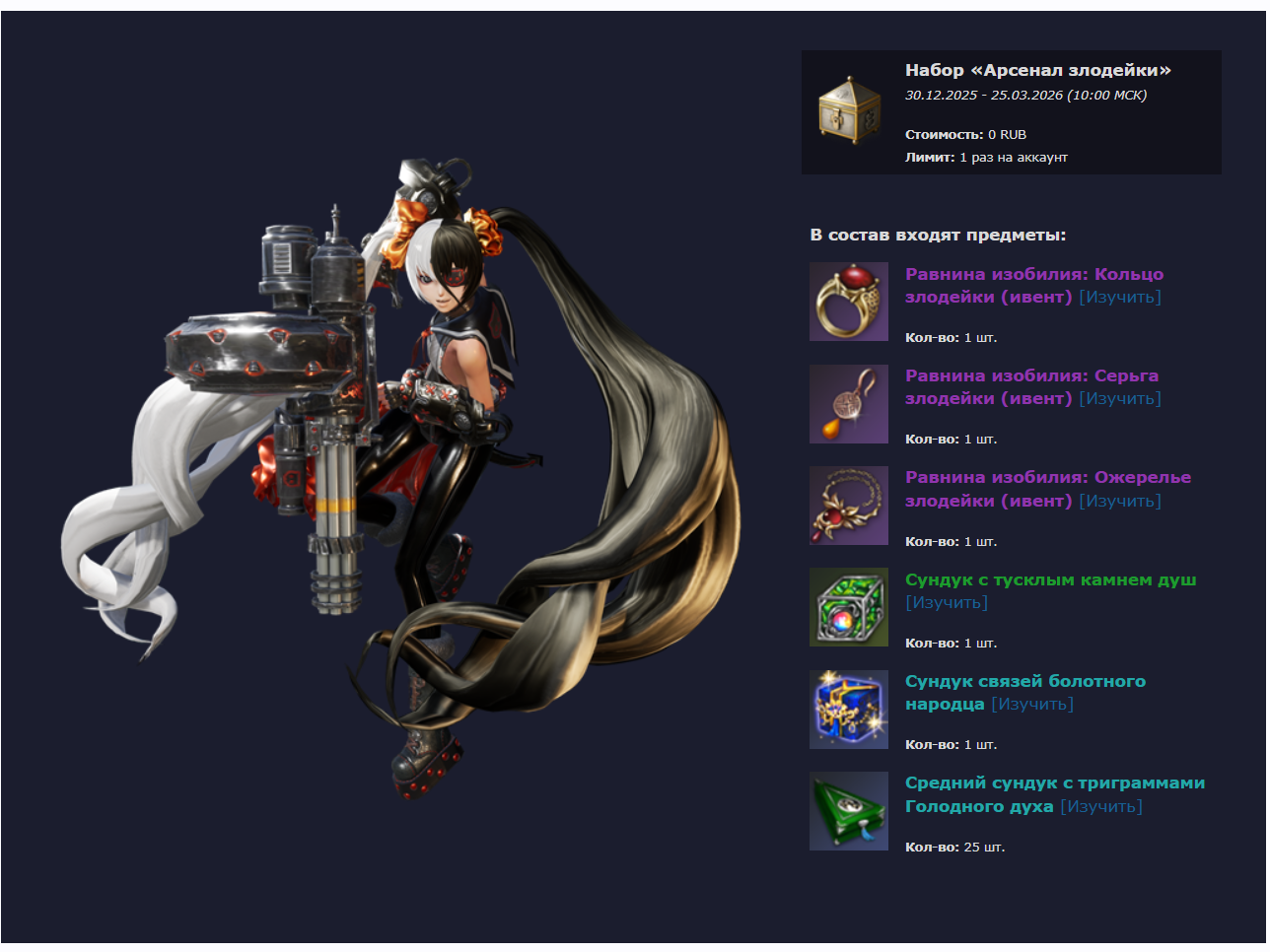 в лаунчере нажми магазин там есть бесплатные наборы арсенал пирата арсенал злодейки( возможно уже нету его) берешь все что бесплатное кароч и забираешь в игре