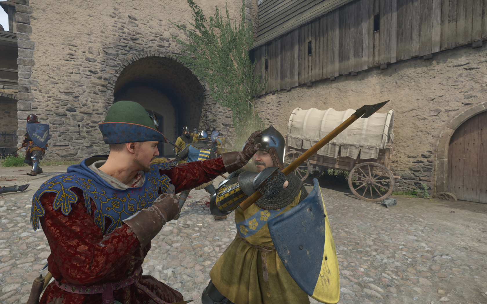 Какой всратый поединок в лагере Сигизмунда вышел, непонятно почему они "запретили" турниры в нём, но хотя бы этот рандомный но тупорылый квест оправдало наличие ристалища в лагере. Охуел с того что там около 10 минут тыкаешься с оппонентом алебардами, у него разумеется она ломается первой, а потом ты пытаешься его напиздить, и это я туда ещё перекачем пришёл, с хуёвой выносливостью силой и прочими перками там наверно вообще клоунада на 30 минут. Зря они алебарды и булавы понёрфили