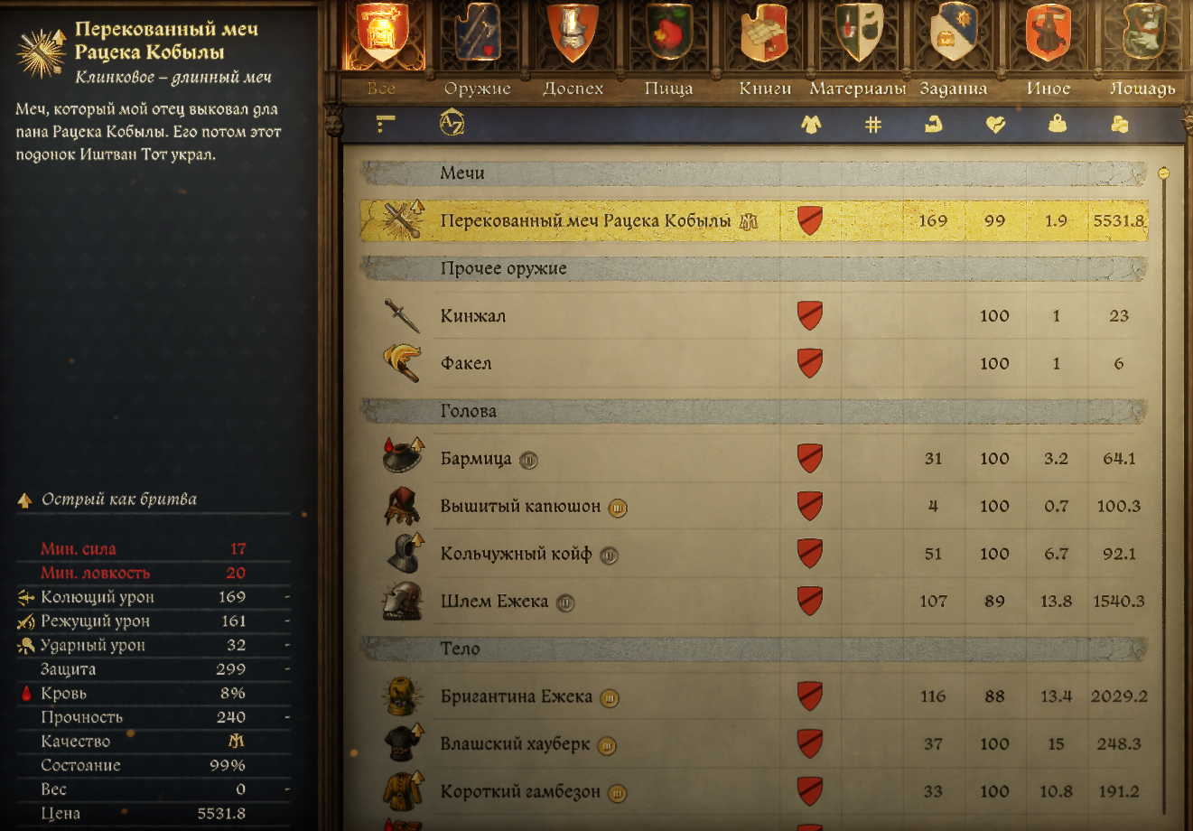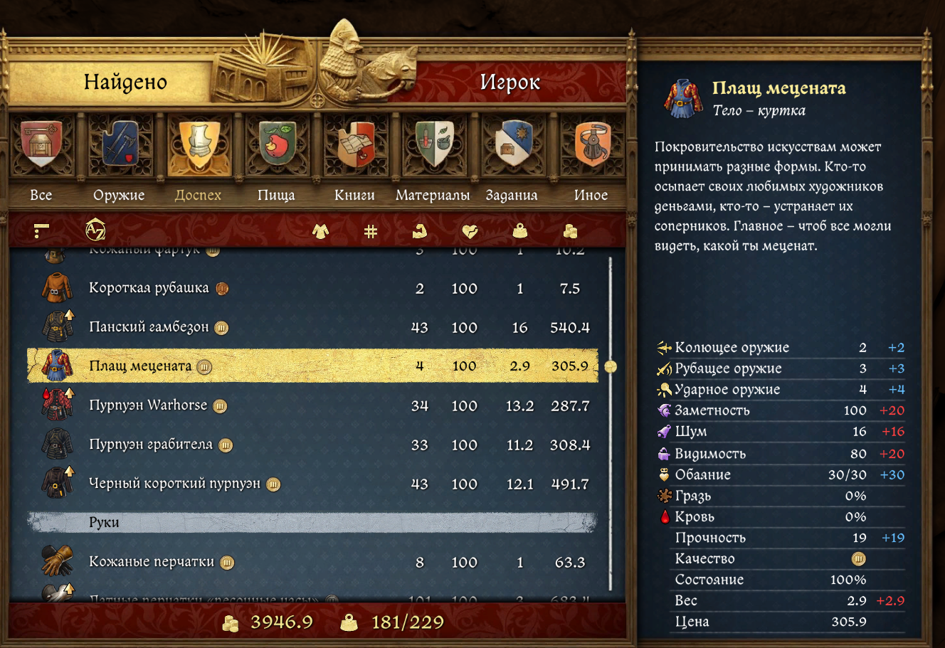 >>50283655 Новое DLC кал. Меч Клячи ты получаешь ещё в Тросковице и он становится твоим главным мечом на всю игру, новые мечи все топ-2, так ещё и активности все сплошь дрочь: елозишь туда-сюда до ближайшей точки телепортации, оттуда минуту скачешь до лагеря, убиваешь пятерых бомжей из лука, лутаешь предметнейм, молишься на то, что это рецепт нового предмета (и ещё 3 кастерских и 5 броницких чертежей), повторяешь. Остальные два типа квестов нужны для того, чтобы фармить 30-й престиж по кд. Но дальше 15-16 престижа подниматься смысла нет, ибо уже тогда у тебя получаются и броник, и литейщик, а на территории сушильня, коптильня и стиралка (а речка там и так через дорогу). Единственный плюс, что можно всё слутанное просто кидать в сундук на продажу, а не бегать по Кутна-Горе по десять минут между всеми ремесленниками, так как у тебя добра на продажу на 10к, а у них у каждого не больше 1700 монет. Потеря за "допиздеться до лучшей цены" не такая большая, так как всё равно все деньги уходят на покупку ворона и чтобы купить новые предметы и сложить их в сундук.