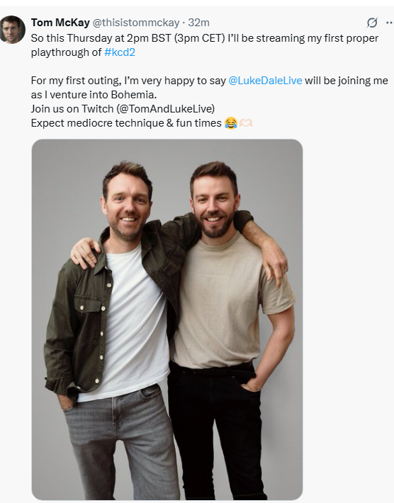 «Снято! Сегодня Том Маккей последний день в кабинке и на Mocap для Kingdom Come Deliverance 2. В течение почти 9 лет он давал жизнь Индржиху [Генри] и помогал формировать нашу историю. Мы отметили это небольшим сюрпризом (да, торт в комплекте). Спасибо, Том — ты всегда будешь частью истории Warhorse!».