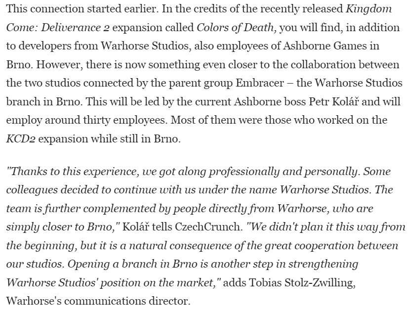 >>50160245 Да, оба длц закончили писать. >Значит большого ДЛС не делается Всё верно, больше сюжетных длц не планируется. Дальше только третья часть про похождения немолодого Индржиха под крылом Жижки и гуситские войны.