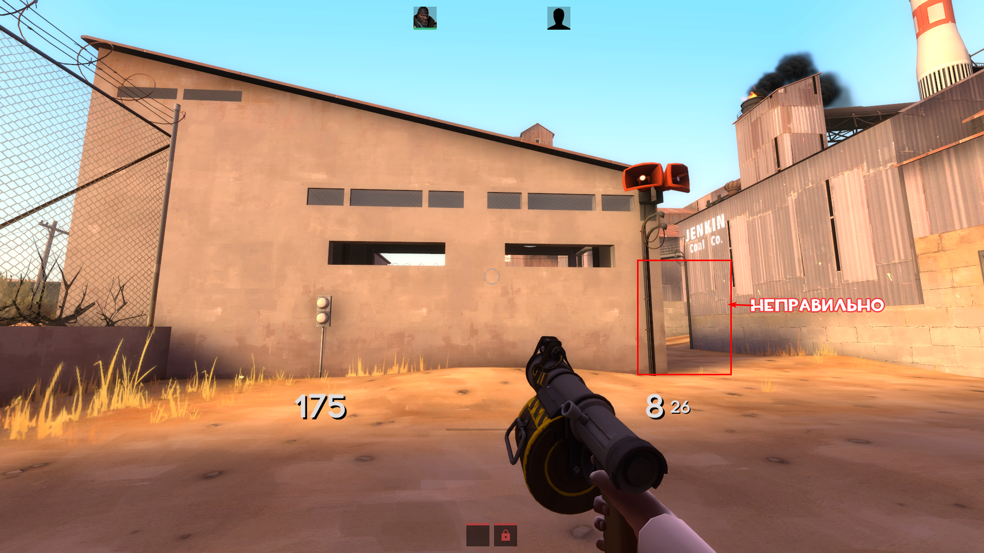 Как заспамить точку врагу на dustbowl на 2 этапе ласт точки: 1)встать на место к краю как на пик 1. 2)наводимся как на пик 2. 3)заряжаем липучкомет наполовину и засоряем врагу всю респу.