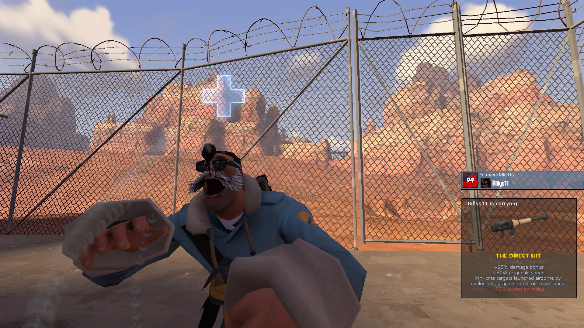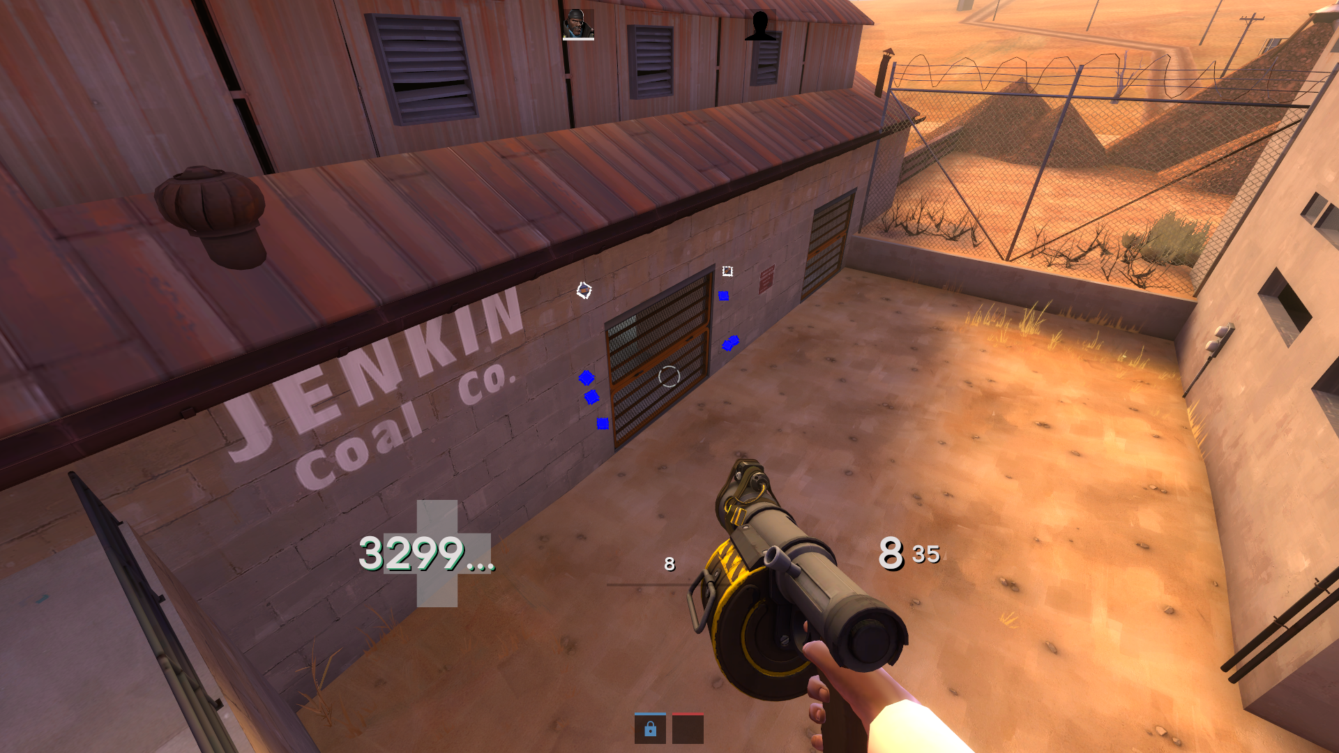 Как засорить врагу первую точку 3-его этапа на dustbowl: 1)встаем к стеночке так, чтобы красный снайпер не смог захуярить пик 1-2. 2)наводимся как на пик 3 и делаем своё грязное дело с помощью шаров черного мужика.