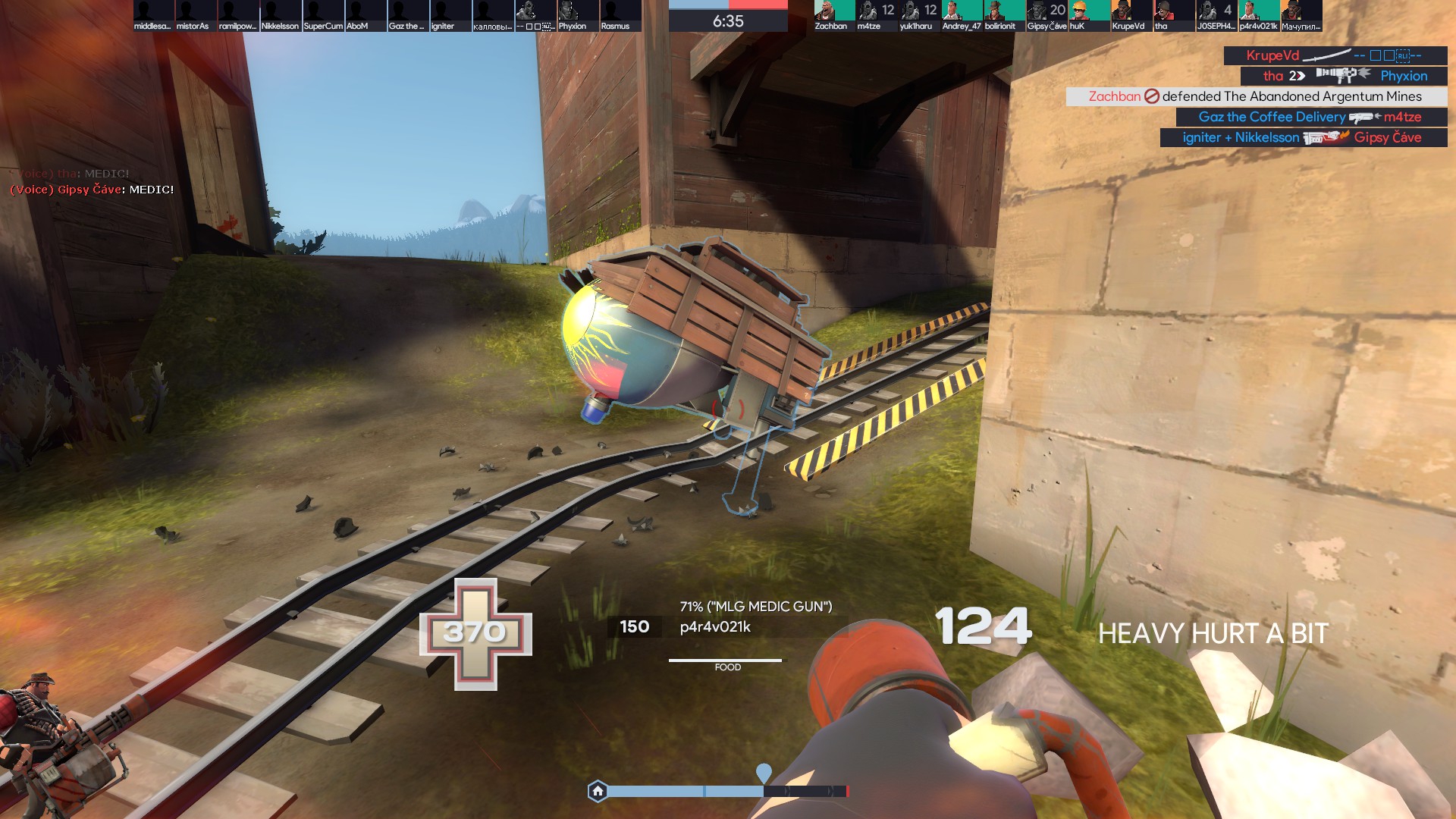 Ваще за медика удивительно весело играть, учитывая престарелось игры и аудиторию, за одну катку похвалить могут по пять раз, не учитывая автоматического произнесенного спасибо. Все вот эти кивания когда лечишь или когда затащил хэвика в которого хуярят из трех пушек.. а вовремя удачный убер...ммммм...когда снес к хуям собачим две турели хэвик сдох и ты одним медиком затащил последний сантимент вагонетки.