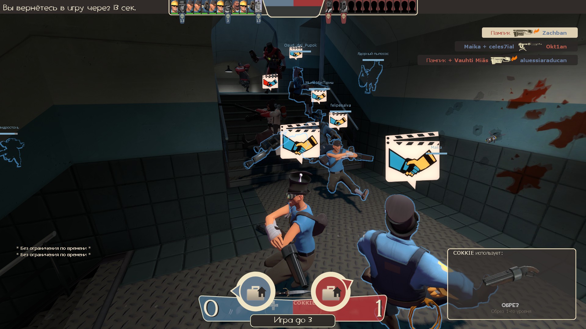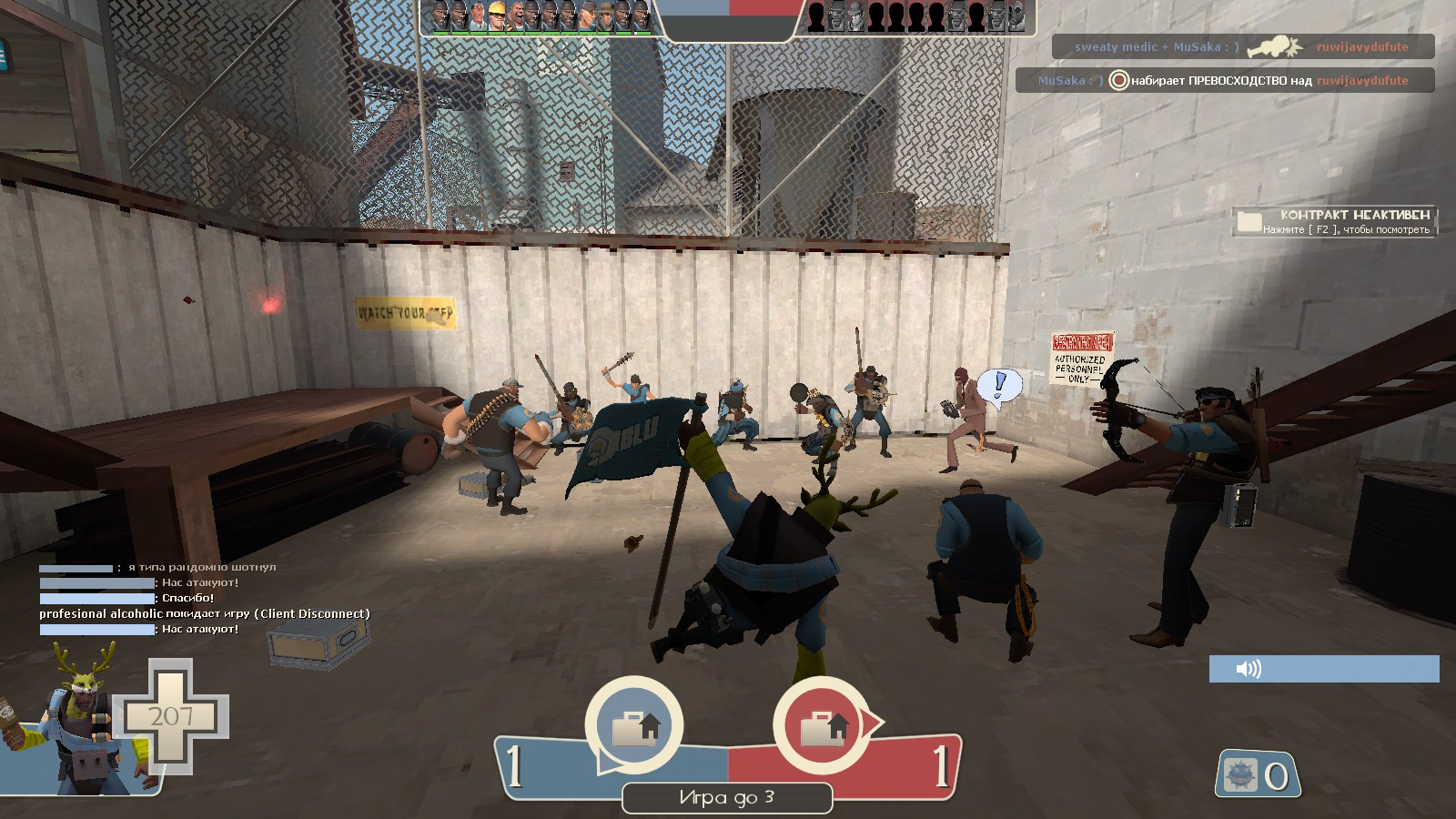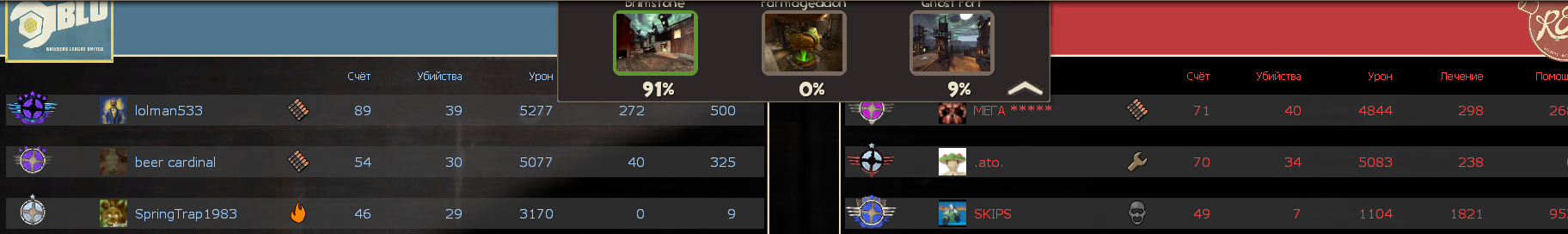 >>49884859 >АЛЕРТ! БУУУУ Ю ФЭЙЛД! Команда ливает к хуям. Заходят другие люди. Сервер постепенно заполняется. >половина команды 5-10 очков, команда врага по 40-50 с кучей домов Ну тут да, лучше ливнуть. >4 шпиона 3 медика в тиме Зайди за сильный класс и позови за собой медика. На остальных наори в войс или в чатик капсом. >сервер ебет скилловичок/читер с покетом так, что не продохнуть Найди другой матч. >матч закончен голосование прошло за говнокарту от комьнити За какую? Так-то валв давным давно сами не делают карт. >пошёл матч, держишь топ-2, хилишь, сэйвишь, жестко зажимаете вражескую тиму, уже почти победили >>ВЫ БУДЕТЕ АВТОМАТИЧЕСКИ ПЕРЕНЕСЕНЫ В КОМАНДУ ЛУЗЕРОВ ЧЕРЕЗ 5 СЕКУНД Ну тут безвыходная ситуация. Тебе может просто высветиться эта надпись но игры переведет другого чела из твоей тимы. Или можно ещё в консоль написать retry чтобы избежать автобаланс, но ты проебешь свои очки что тоже хуевый варик. Остаётся только затерпеть. А если ещё есть время то попробуй затащить уже в другой тиме. Может быть твоя тима тащила только из-за тебя, а без тебя они начнут сосать?
