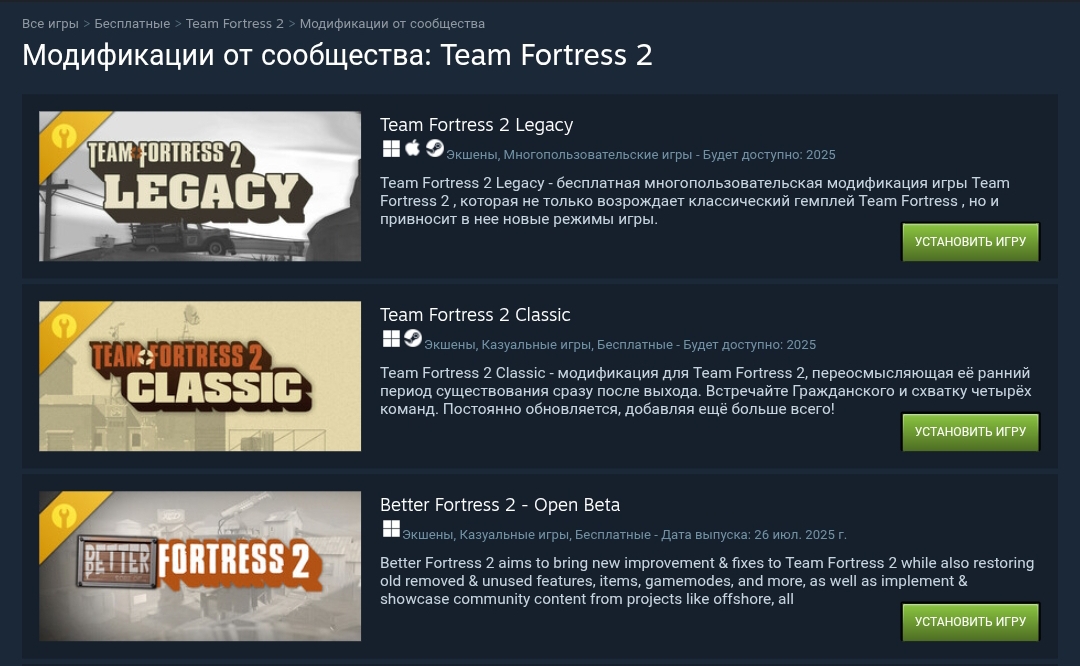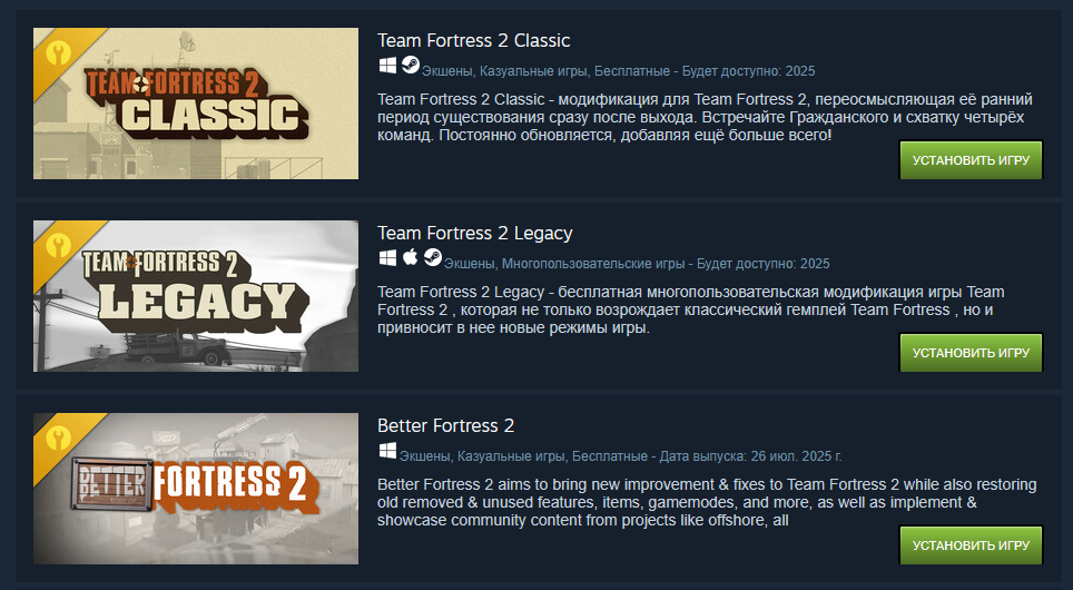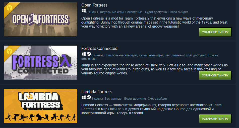 Данный мод позволяет пройти кампанию Half-Life 2 и других игр на движке Source, играя за наёмников из TF2