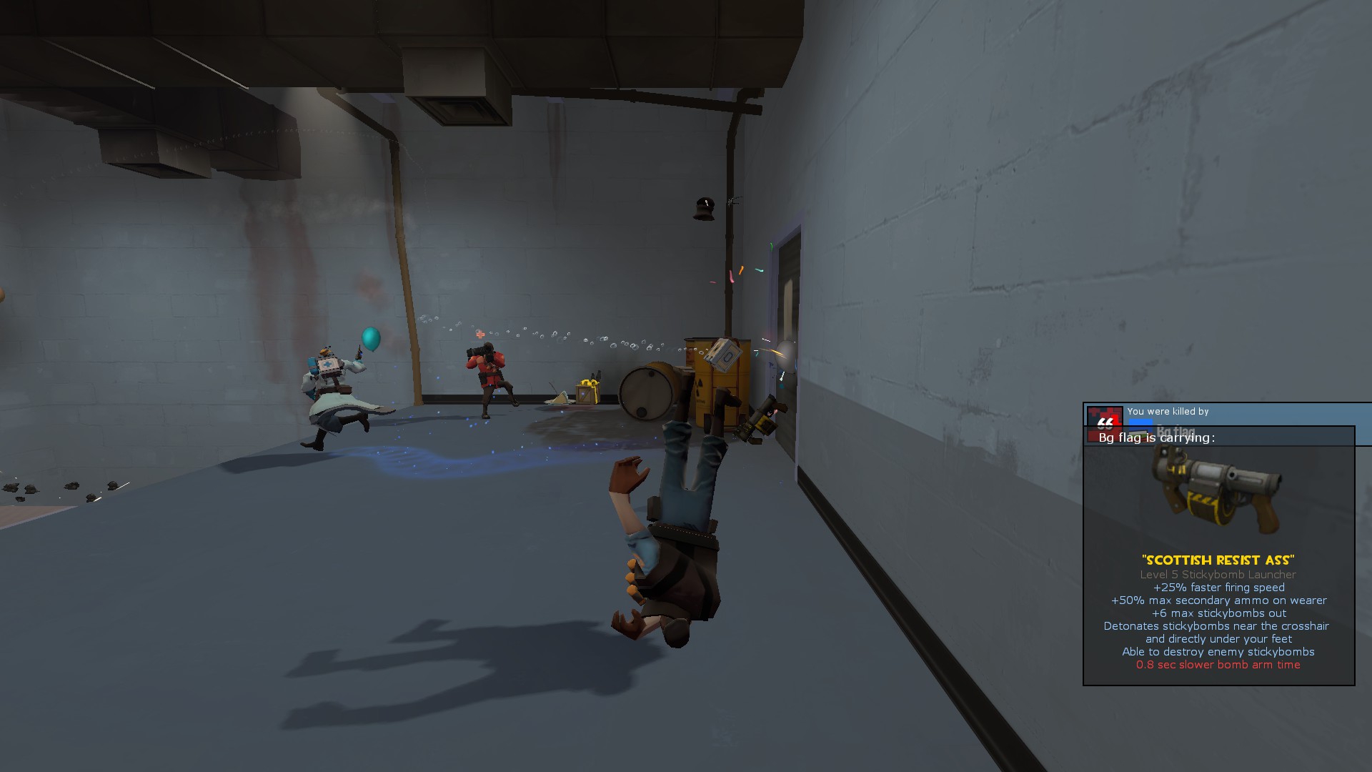Обновлен koth_demolition Обновлены звуки парового свистка Уменьшено значение ambient_generic на карте, чтобы избежать проблем с отсутствием воспроизведения звуков. Изменены деревянные знаки КРАСНОЙ стороны на нижнем фланге, чтобы соответствовать знакам СИНЕЙ стороны. Точки появления теперь указывают на главную дверь. Убрано место для тримпинга на платформе крана. Аптечка на платформе крана перенесена вперед, чтобы игрокам не приходилось разворачиваться, чтобы добраться до контрольной точки. Добавлена площадка для прыжков на платформе крана, позволяющая менее подвижным классам вернуться на контрольную точку, если они там застряли. Добавлены критические частицы удара «злому оленю», когда он убивает игроков. Добавлено столкновение с некоторыми трубами возле платформы контрольной точки, чтобы игроки могли стоять на них. Скорректирована навигационная сетка с учетом новых изменений (еще раз спасибо, Катсу)