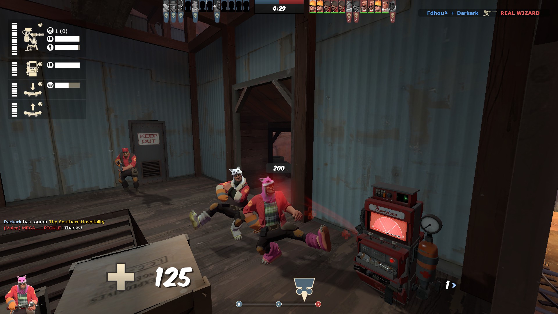 Пиро делает пшик, резерв шутер делает буньк, хеви делает ататата, турелька вообще ужас что делает... Главное иметь в виду что в команде противника есть ромка-попрыгун и вовремя его замечать, пока он не слишком близко. Это примерно как шпион, только говно.