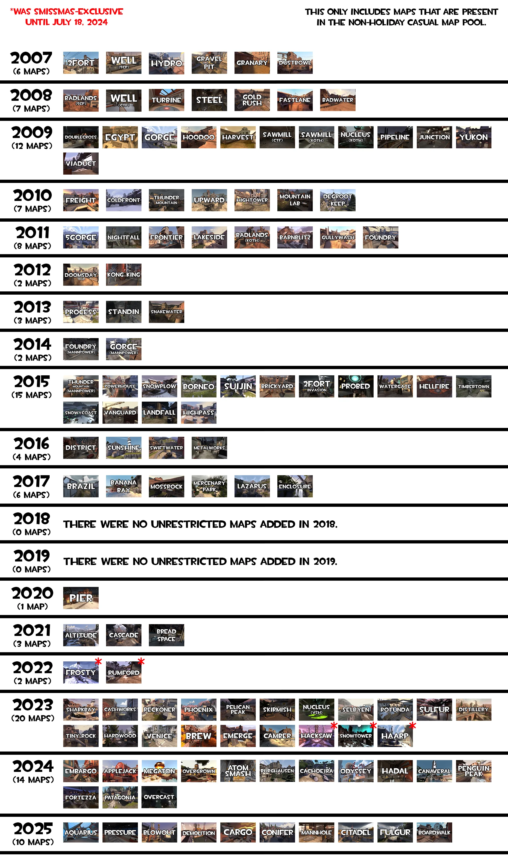 Гайз, ищу старую карту на ТФ2, играл на ней в 2010-2013 годах. Карта крошечная, два спауна друг на против друга. Между ними арена круглая, как в колизее. Со спаунов есть два выхода: прямо на арену и наверх по узким коридорам. Наверху над спавном два этажа в виде площадок с открытыми окнами зеркально друг напротив друга. На последнем ярусе между окнами прокинуты доски, чтобы можно было от окна к окну перейти и начать давиться в низ по коридорам к спауну врага. Называлась карта то ли duel, то ли arena, что-то такое. Вариантов карты было много. Вернулся в игру, пробовал искать по тегам, по наименованию карты, но не нашёл ничего. Мариокарты нашел, трейдплазу нашел, оранжей кучу нашёл, а это нет