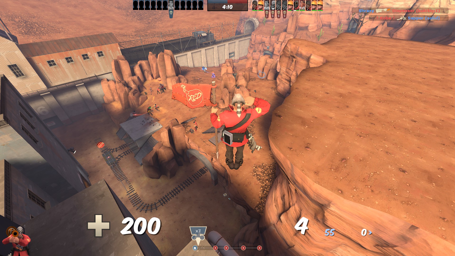 Как засорить врагу самую последнюю точку в dustbowl: 1) запрыгиваем на это место на самый краюшек, пик 1. 2) наводимся чуть выше ракеты и хуячим липучки по всей базе.