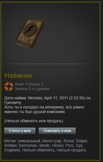 Это может прозвучать дико, но в тф2 я начал играть ещё будучи 10 летним пиздюком 2008-2009й год в своей мухосрани на крайнем севере без интернета только с локалкой, до патча с первыми шапками. Я помню как увидел трейлер ТФки на местном аналоге ютюба и весь год ходил облизывался. Потом случайно увидел в компьютерном магазине Орандж Бокс за 600 рублей, на обложке которого был Хэвик. Выклянчил у родителей типо на ДР который должен был быть через месяц. Приношу значит домой, вставляю первый диск, а там просят установку стима, регистрацию аккаунта и прочие интернет-приколы. Так у меня этот диск и провалялся, активировал его уже батя на своем ноуте когда ездил в командировку через несколько лет. Аккаунт кстати так до сих пор так и называется ИМЯ БАТИ 1971