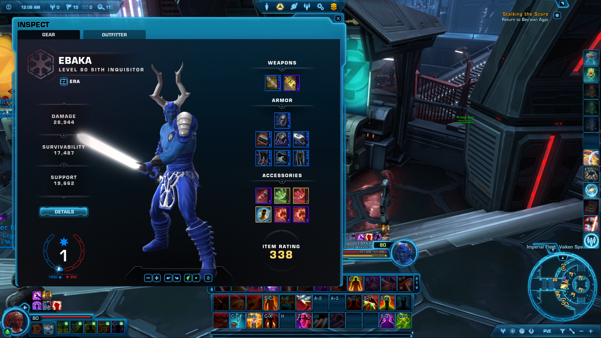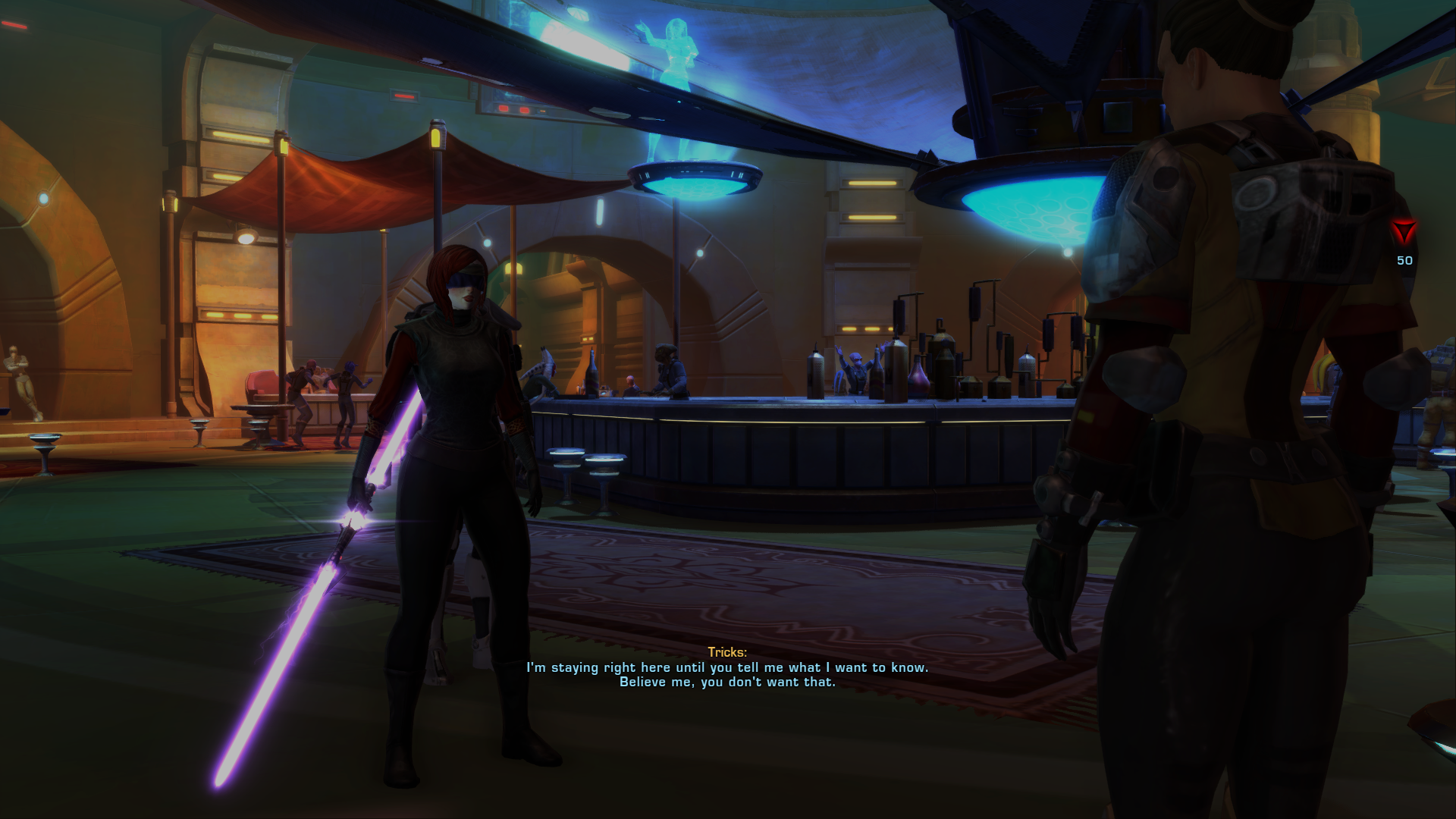 Очень сложно играть за ситха инквизитора после ситха воена. Воен с такими прикольными цепляющими угрожающими интонациями говорил, шутки даже иногда смешные шутил, а актёр озвучки инквизитора унылым голосом чота бубнит, совсем не нравится.