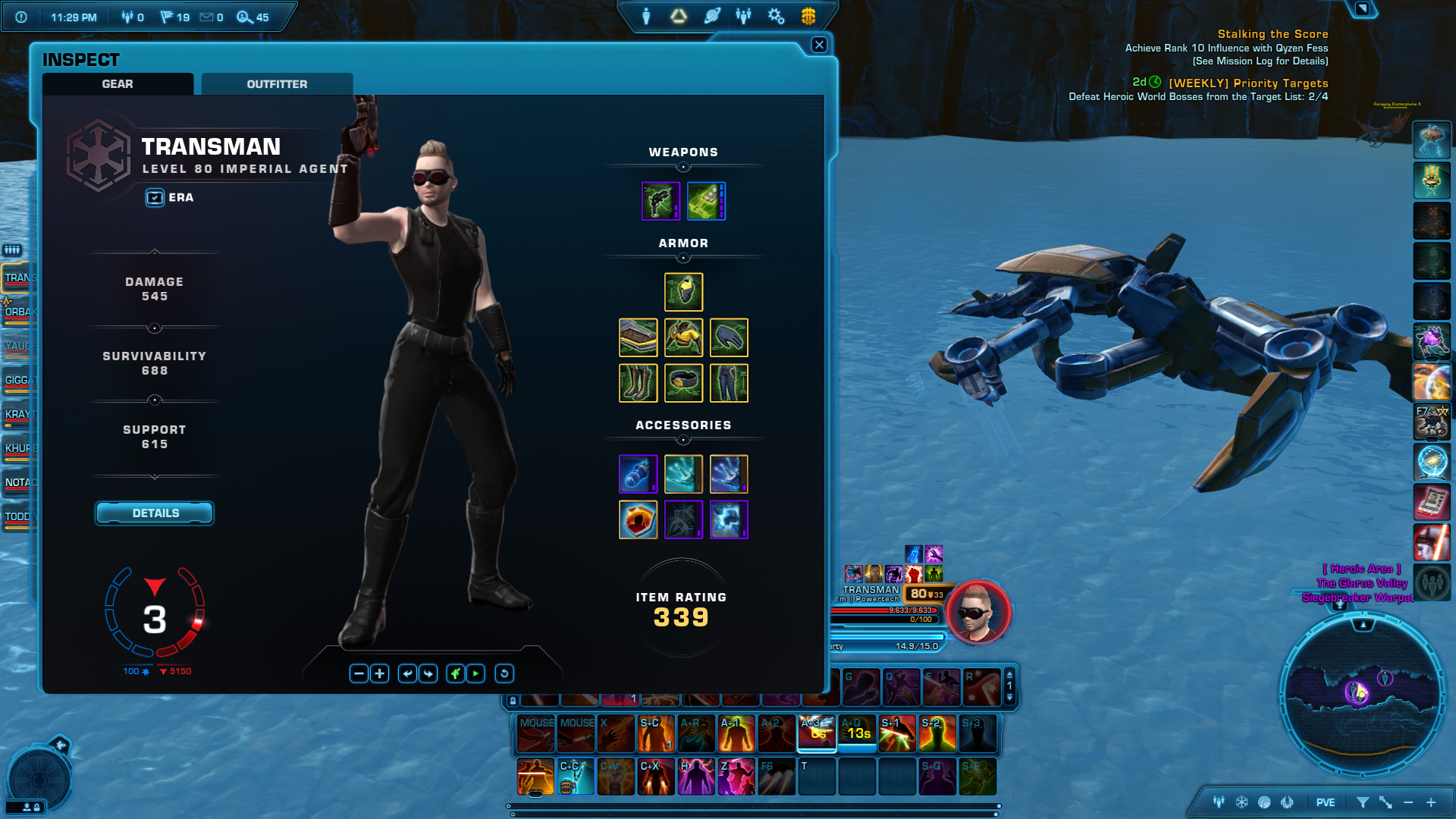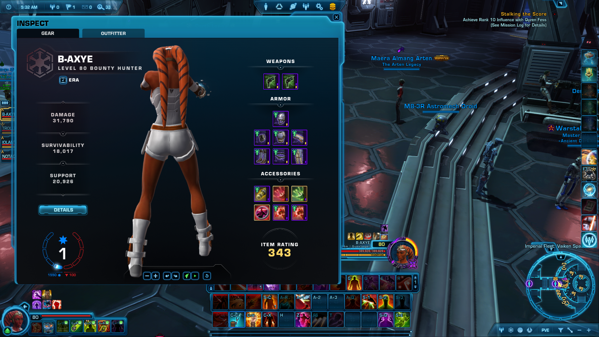 Поиграла за имперского агента, в первый раз создала женского персонажа, нет уже той силы, мощи и страха, который я получала от игры за ситха, или же уважения и теплой благодарности от игры за джедая, чувствуется больше, что я какая-то маленькая сошка, подсос какой-то, и что раздавить меня может чуть ли не любой вышестоящий, а по сравнению с теми двумя персонажами, в иерархии я реально где-то почти на дне нахожусь. Но сюжетка интригует, Дарт Джейдус интересный персонаж, правда т.к. я играю с русиком, перевод у имперского агента куда хуже, чем у ситха или джедая, прям ощутимо видится промт какой-то, которого я почти и не замечала за прошлые два класса. Посмотрим, что да как дальше будет. Алсо, у меня скриншотер нвидии сломался по какой-то причине и делает скрины игры масштабируя экран в 100 раз и снимая какой-то правый угол игры.