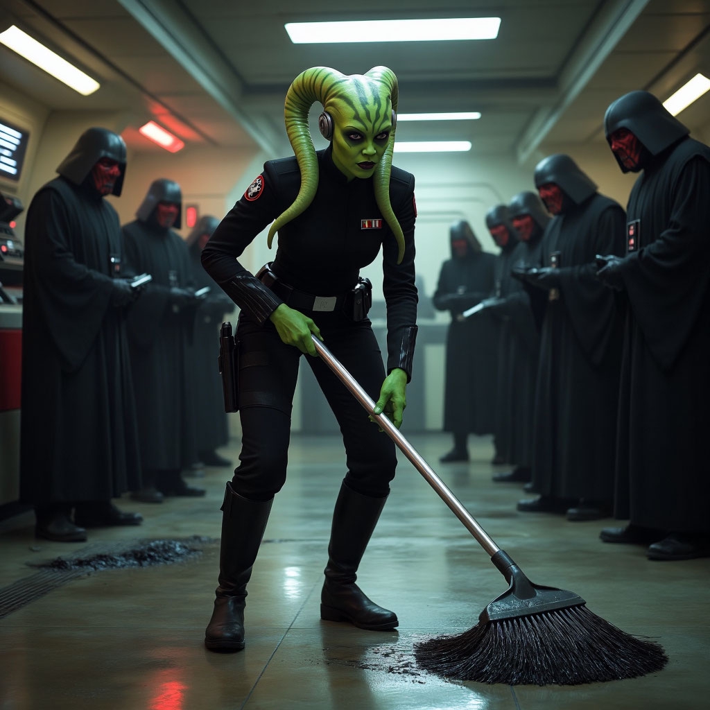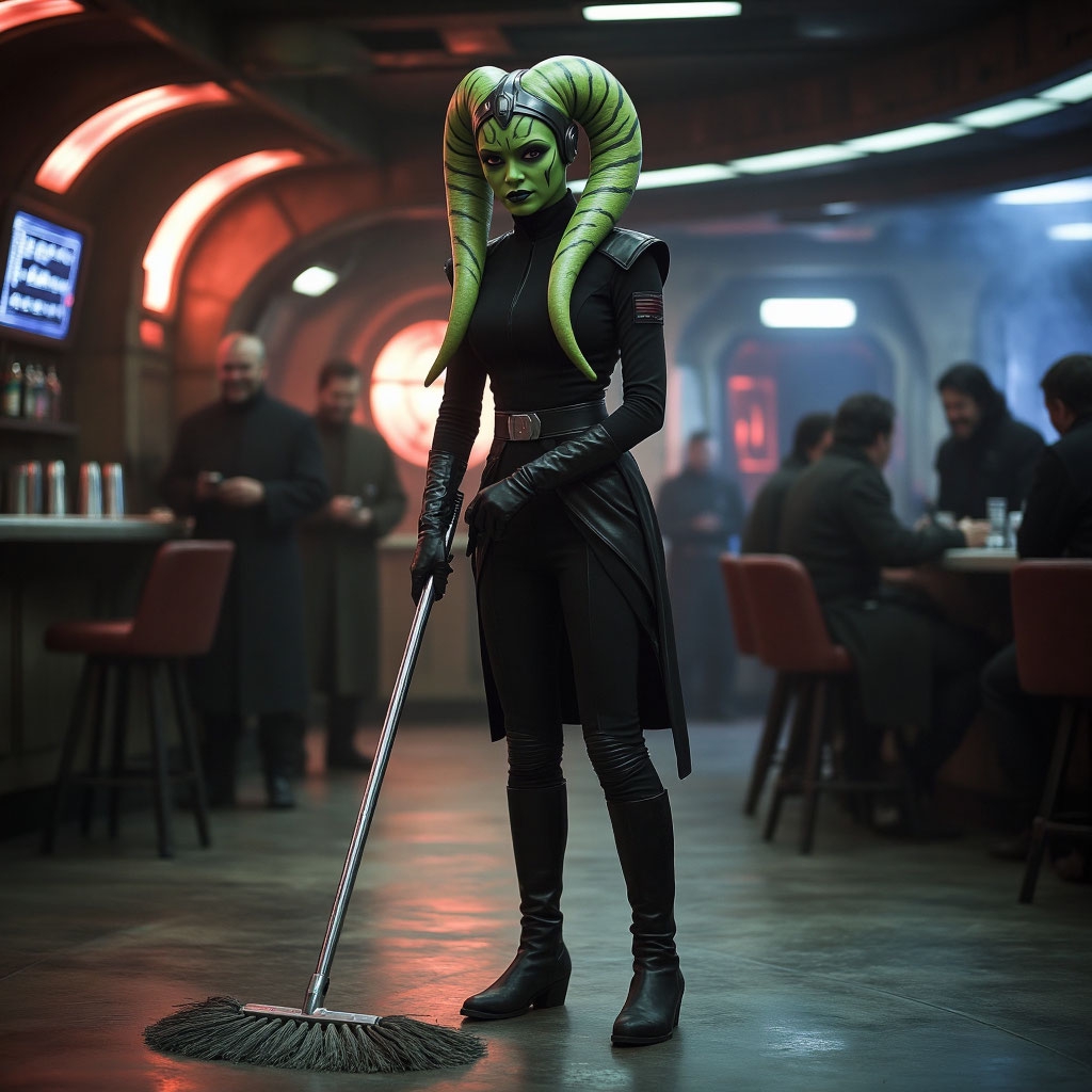 >>50465099 ну хз можешь сам сгенерить https://alice.yandex.ru пример промпта- нарисуй green twi'lek female from star wars the old republic, dark face stripes, galactic empire officer black uniform, mopping floor in cantina несколько вариантов на русском тоже пройдет