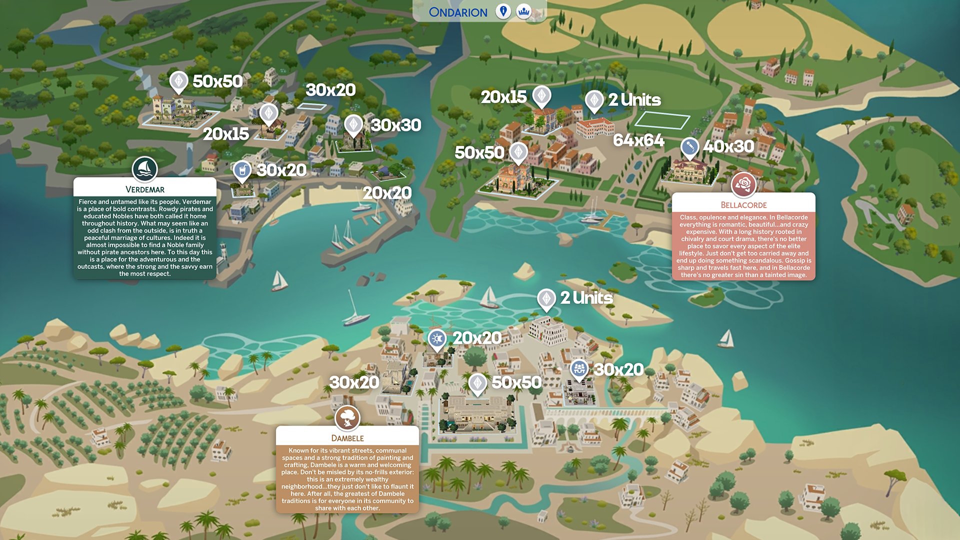 Доступна карта Ондариона! Официальный аккаунт The Sims в X опубликовал карту Ондариона — нового городка из дополнения «Сквозь века». Три района будут включать в себя 16 участков.