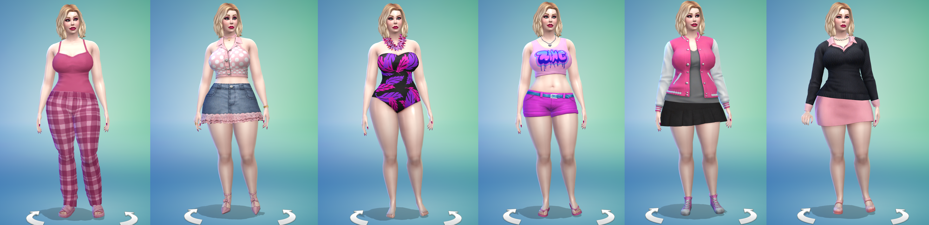 >>50695768 Почему карлица? >>50695809 Чем похожа? >>50695876 Нет, просто было интересно создать женского персонажа. Вот кстати полный набор аутфитов: Слева направо - домашний, праздничный, купальный, жаркая погода, холодная погода, рабочий. Правда где ей строить карьеру и в целом лор я пока не придумал.