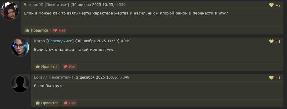 Кстати, хорошо что напомнили, там новый мод на копание в симе вышел, мб хоть он отлепит от моего мага невесть как прилепившиеся к нему перки вампира, из-за которых он вечно с "нейтральной" рожей ходит. Никаких модов на гибриды нет и не было.