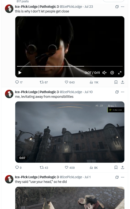 >>50353511 Демка, кстати, вообще никому не нужна оказалась - чекайте итоги стим некст феста. У игры буквально нет предпосылок хорошо продаться: нишевая франшиза, ещё более обскурный чем у неремейка геймплей, шизофазический уровень текста. Я искренне хочу увидеть реакцию нормиса на демку, который увидит мор впервые в таком виде.