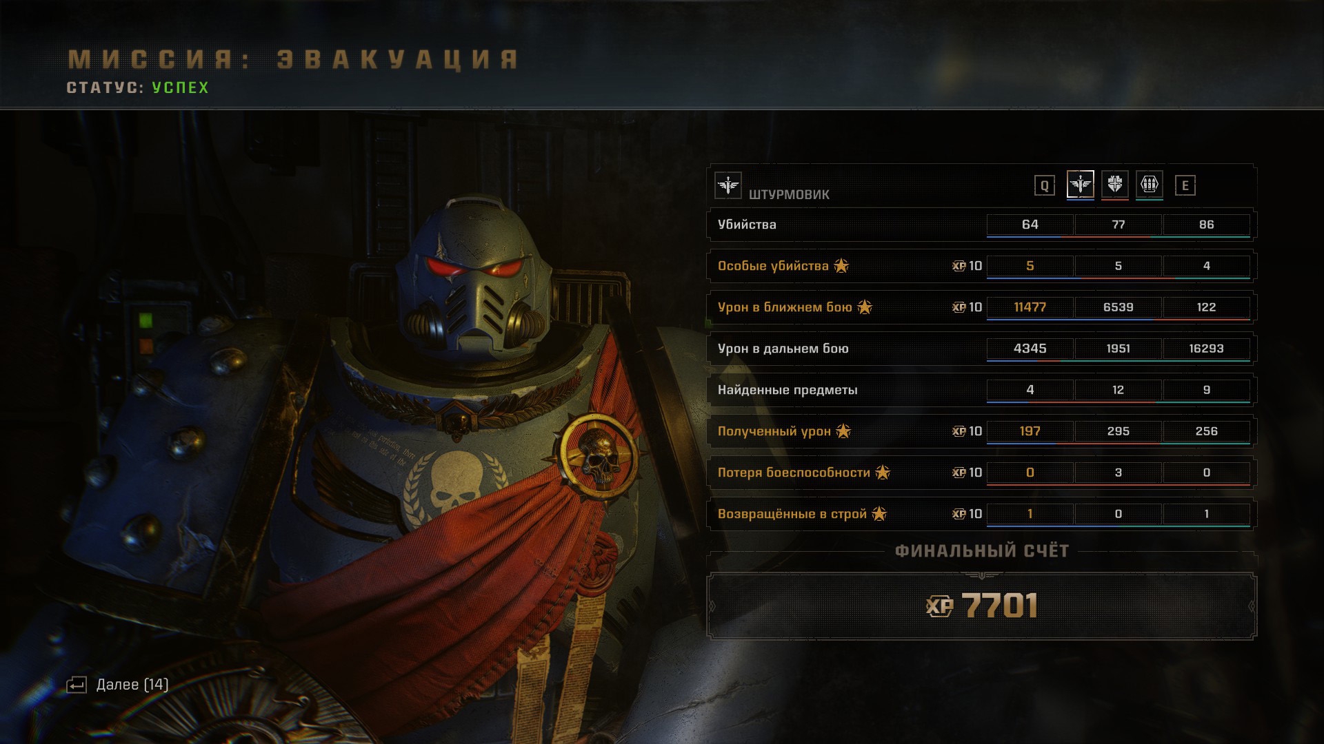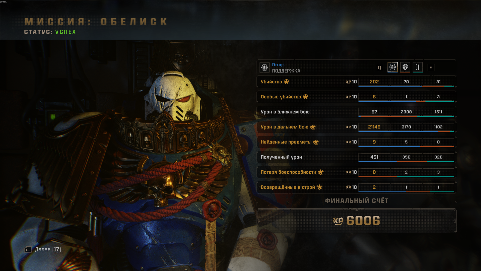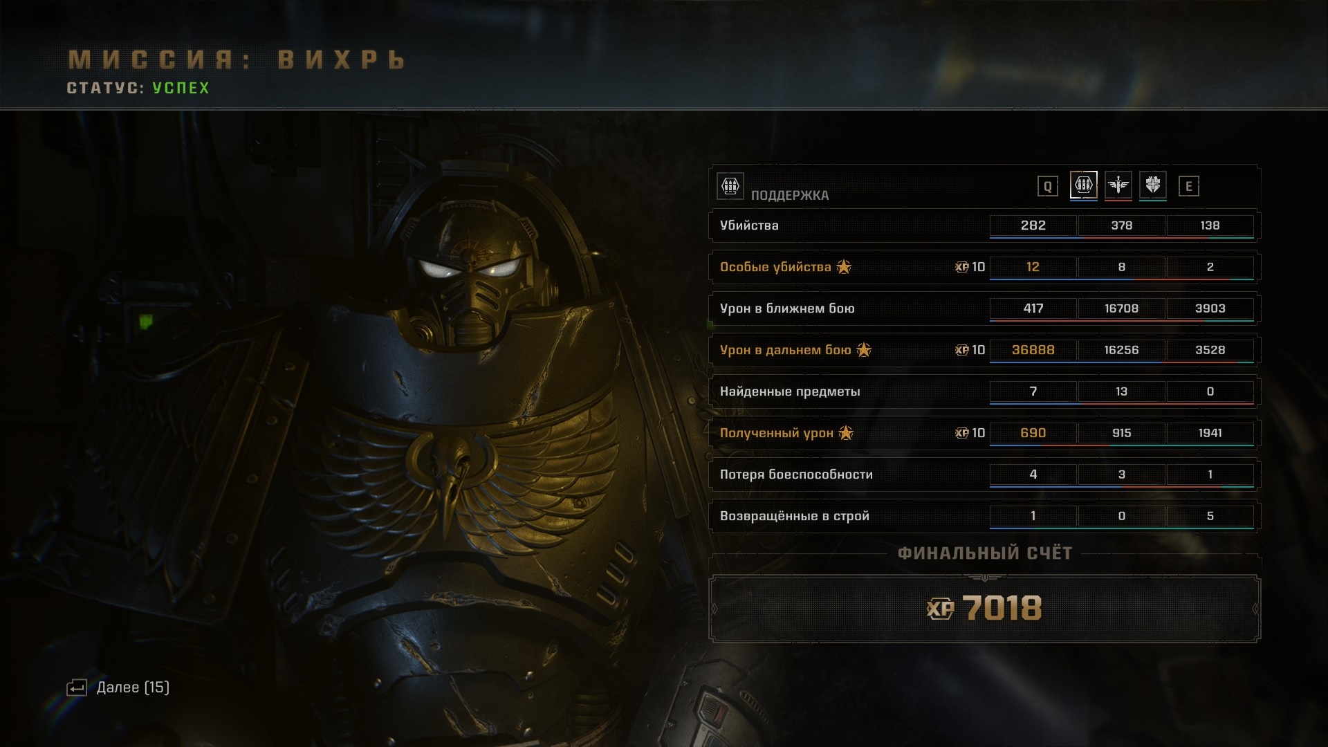 Выбил платину, дрочь, конечно, но терпимо, я думал дольше займет. У меня на 40 часах не было даже еще 20к киллов, я думал еще часов 40 уйдет на 41к килл. Но, к счастью, миссия по Тирану Улья меня выручила. За это время я взял первый престиж на тактичку и докачал до 23го хеви, остальные класссы брал чисто для выполнения ачивок и мне они не особо понравились. Операции довольно скучные, на самом деле, но их много, плюс тиммейты часто исполняют пиздец, вводят элемент неожиданности. ПВП было повеселее, но там как-будто вообще смысла играть нет, он сделан так, для галочки. 3 малюсенькие карты на 12 человек и 3 режима, на этих же картах. Плюс, хаос как сторона не представлена по факту, там даже нельзя броню кастомизировать. Осада - это типичный тавер дифенс, но нормально его не поиграть, так как все съебываются после первого сектора, тут примейдом нужно. Вообще, по хорошему играть бы с друзьями, но это для всех коопных игр так. В целом, как-будто бы можно было бы еще поиграть, но не думаю, что вернусь. Может с новыми обновами буду потихоньку заходить поигрывать, но пока, думаю, хватит.