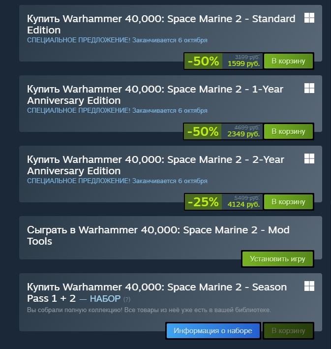 >>50447650 >Онлайн в игре живой? Да. >Контент в игре регулярно обновляется? Да. >Сетевой режим выглядит как в первой части или ему уделено больше внимания, чем синглу? Смотря о чем речь. Пвп в целом не отличается от первой части, вернее, в первой части он даже лучше в плане количества карт и режимов игры. Но во второй части больше классов. А вот пве гораздо лучше, чем в первой части, активно развивается. >Выбираю между этой игрой и дарктайдом и пока не могу решиться, что брать. Дарктайд более ориентирован на мультиплеер, но это по сути рескин верминтайда, который мне поднадоел. Дарктайд хорош, но большинство купивших игру вряд ли пойдут дальше 100 часов, ибо как раз 100 часов хватит на то, чтобы апнуть всем 30 лвл и забыть, прокачка там даже быстрее чем в спеймарине. Но в дарктайде скоро будет еще один класс, в итоге наберется 6. Хз платный или бесплатный, скорее всего платный как и арбитр. Хотя если тебе нравится верминтайд, то бери дарктайд, если не собираешься зависать в пвп мультиплеере спейсмарина.