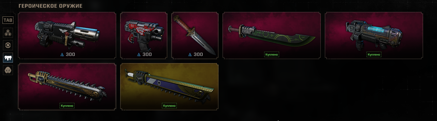 У меня одного героическое оружие невозможно использовать в тренировочной комнате? Зашел туда с комбимельтой, но в руках самый первый болтер из этого древа. С цепным мечом так же.
