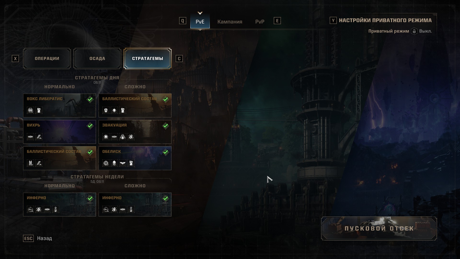 Че уже делал кто-нибудь сложную стратагему недельную? Я нормал сделал, охуел от тупизны моих тиммейтов, которые ни вунду захилить не могут, ни кнопкочки на боссфайте понажимать, охуел от урона в хеллдрейка, охуел от того как мое хп улетело пока я за черепом бегал, ну, короче, охуел по полной и вышел. Может на неделе потраю сложную, но желания, честно сказать, мало. Если бы хотя бы один из модов негативных был другим, ну или если бы эта была ЛЮБАЯ, БЛЯДЬ, другая миссия - я бы прям сегодня ее попробовал. Но так - идите нахуй.